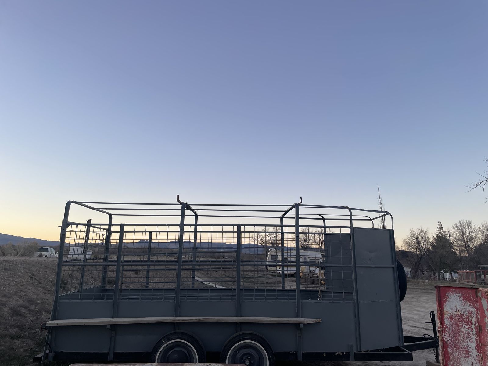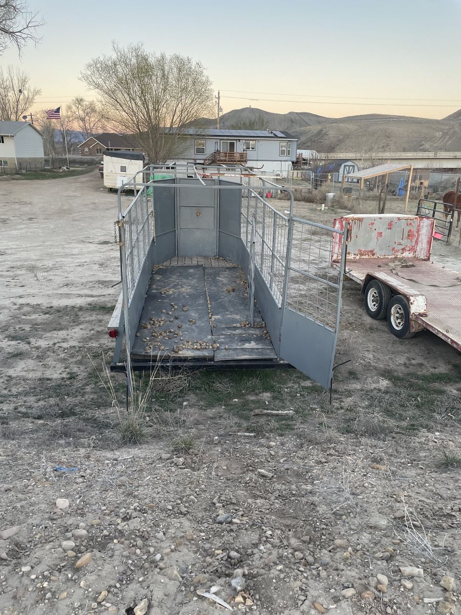 Good little trailer lights work good wood floor with rubber mats have healed 2 horse in it would be great for hauling small livestock 15’ 7” long 6’ 3” tall 5’ 9” wide 19’ 3” from bumper to hitch was built on a old camper frame no title but will give a bill of sale