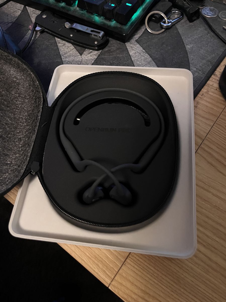 Comes with case, charging cable, and Shokz warranty card