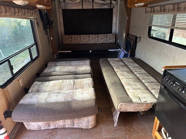 CashAppFleetwood Gear Box Toy Hauler. Have the fun time this easter at the Dunes or Sturgis in August. This toyhauler can handle 4 wheeler, or a Ranger, or an Arctic Cat Wildcat Or like presently set up with stands for two Harleys. And sleeps up 9 people.
