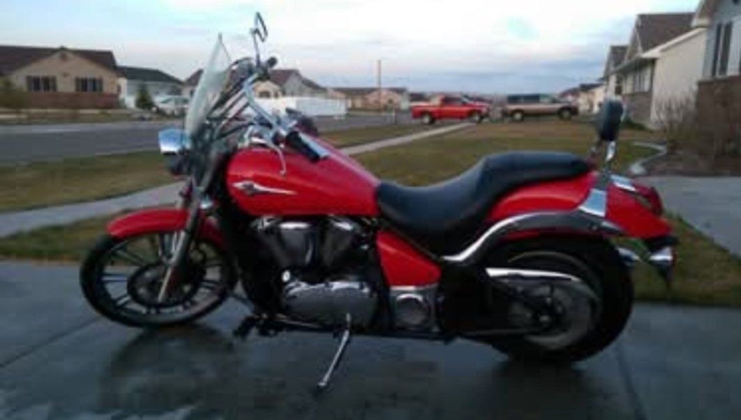 2008 Kawasaki Vulcan 900 Custom, red, windshield, sissy bar. Oil change, new spark plugs, new air filter, new fork seals at 14,100 miles. Original front sprocket replaced with a larger one to increase top speed. Good looking, great, reliable motorcycle with 14,900 miles. No trades.