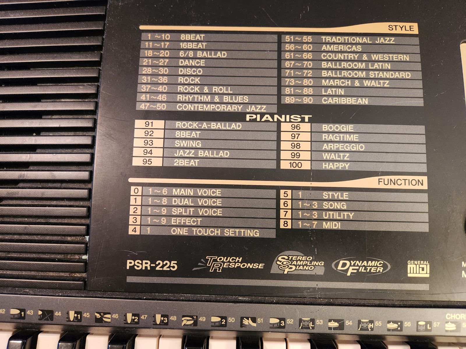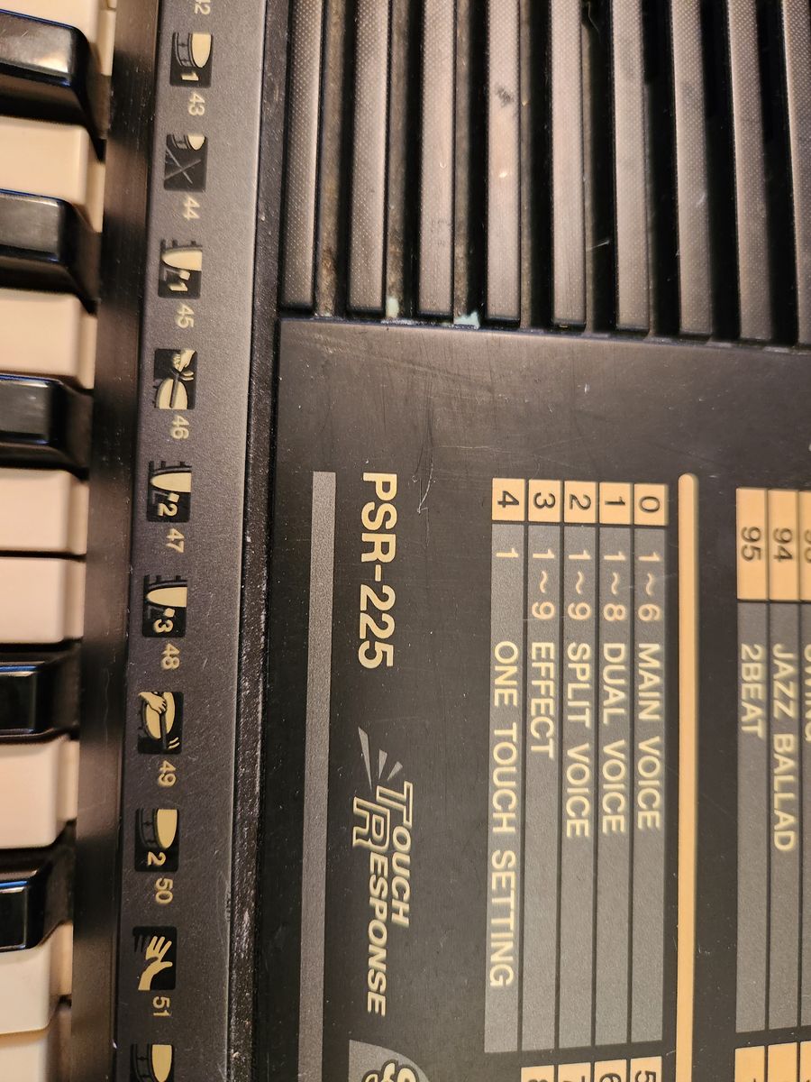 Yamaha DJX PSR-225 keyboard synthesizer with MIDI. Touch senstive. Works great. Perfect condition. 235 voices, 100 beats, accompaniament.