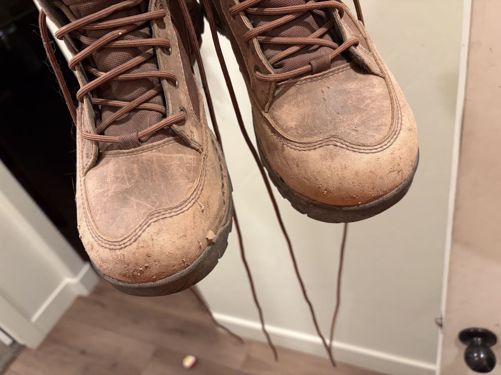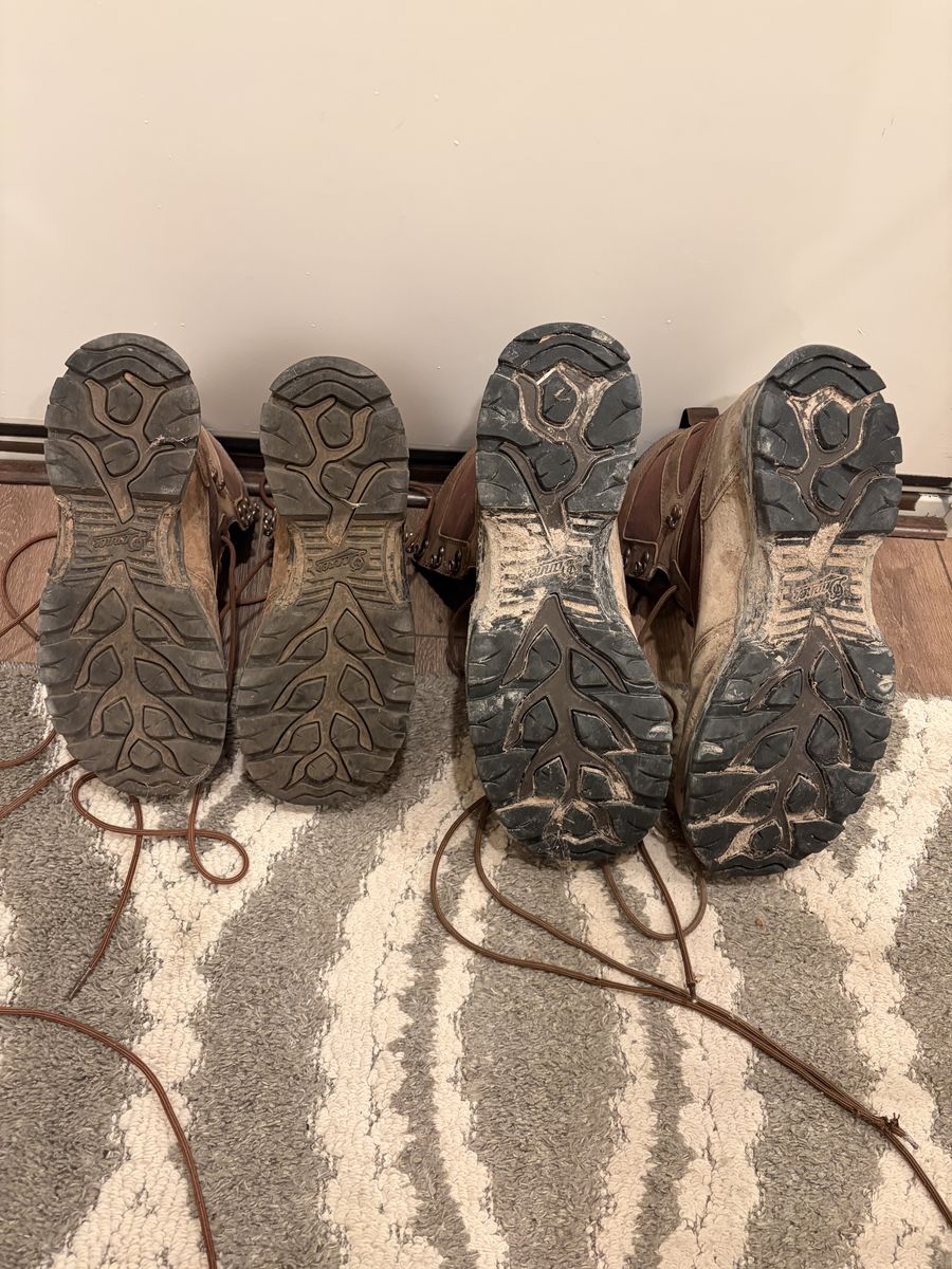 Venmo2 pairs of Danner pronghorn boots. They are lightly used but do have some wear on the toes. I think my wife wore hers twice.The tread is in great condition on both pairs. $75 per pair or $150 for both. Sizes Women’s 8 Men’s 15