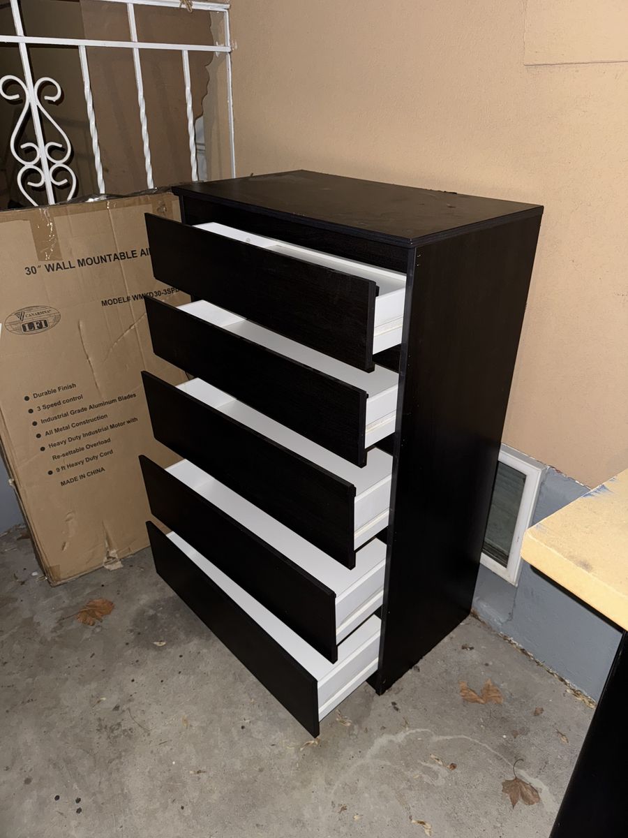 VenmoBlack 5 drawer dresser in good condition, works fine $100 Accept only in cash Hablo Español