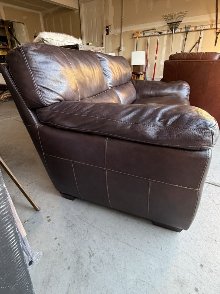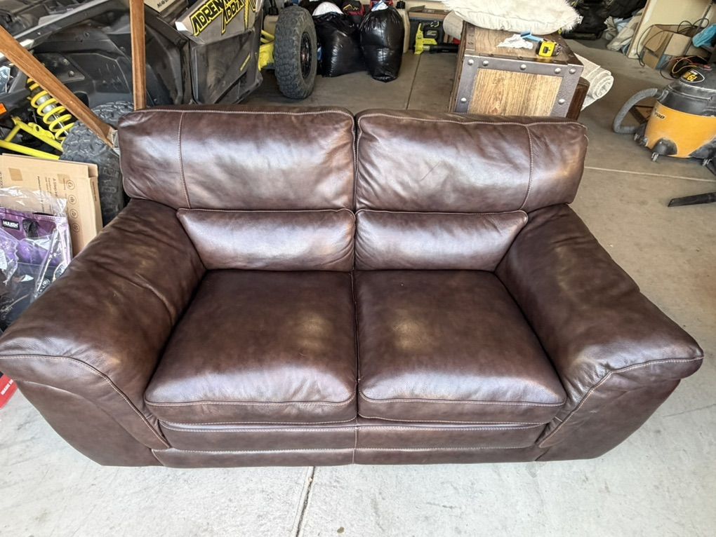 Super nice dark brown leather loveseat couch. MINIMAL wear. 64”W x 35”D. Asking $500 OBO