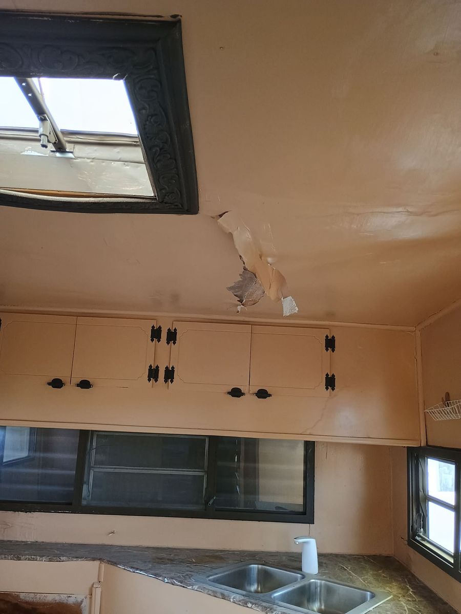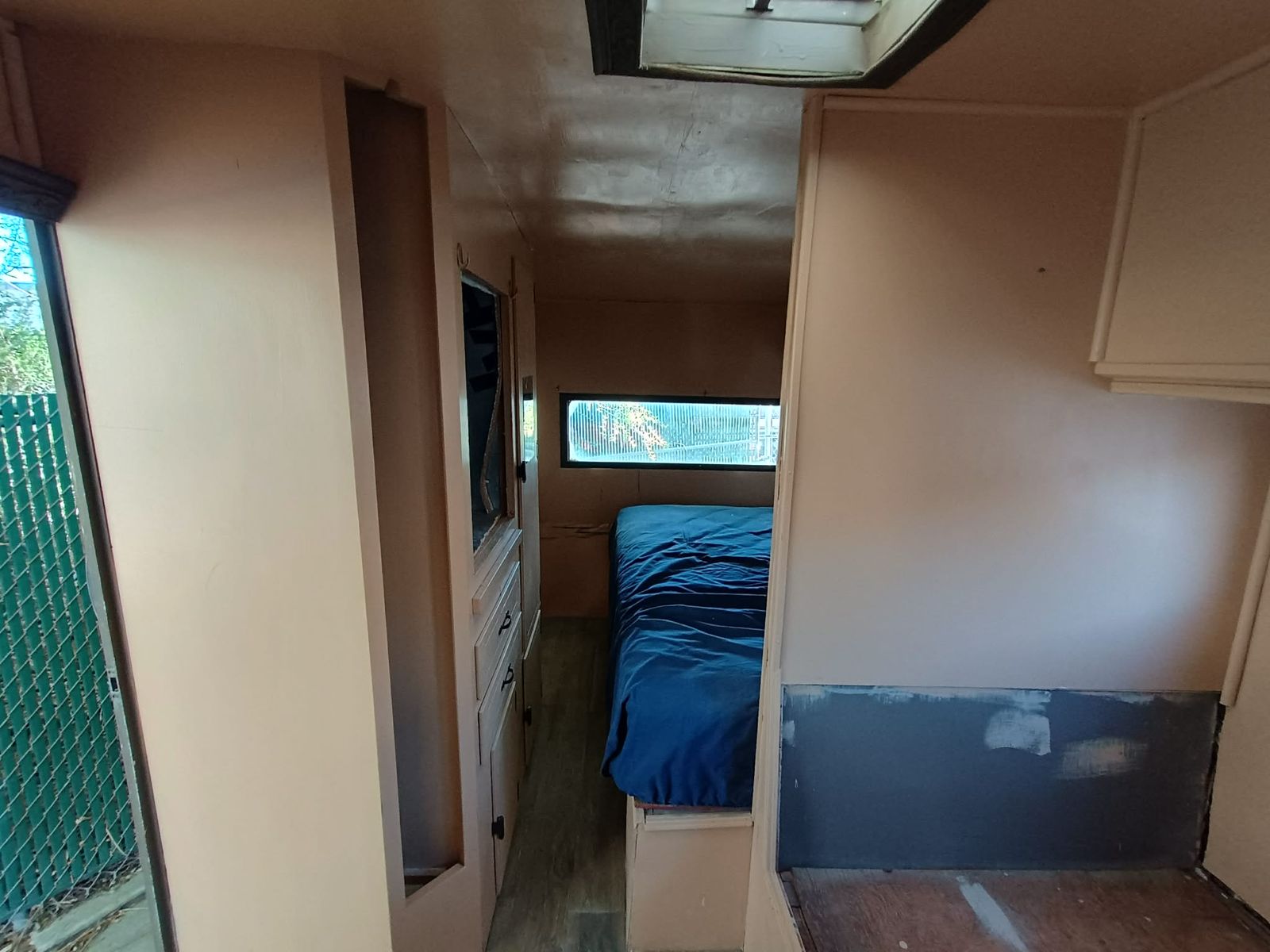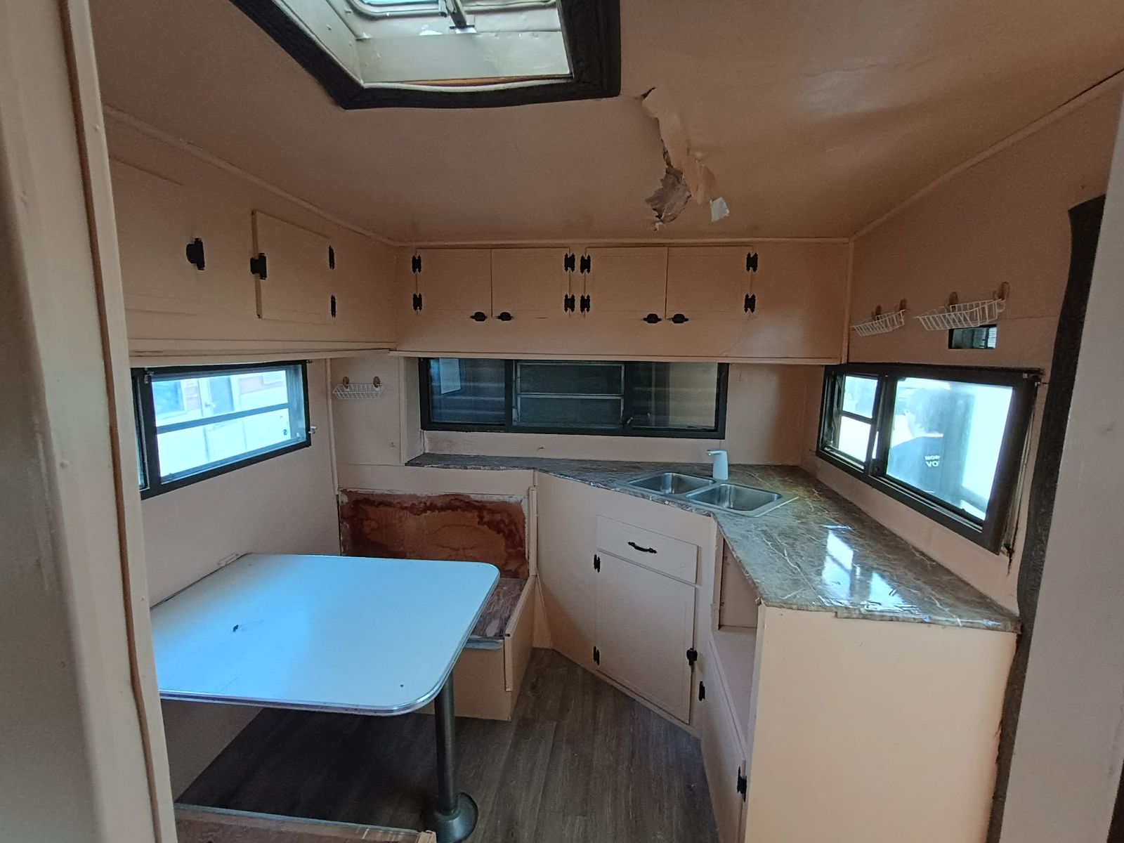 Venmo1969 14ft travel trailer (14ft trailer body + 3.5ft hitch). Could use a bit of work, but mostly just cosmetic. There is a crack in the ceiling panel, there was a leak, I fixed the leak, but used the wrong stuff to fix the panel inside, so it cracked. The leak may also be back, I don't know, haven't used this thing in over a year.