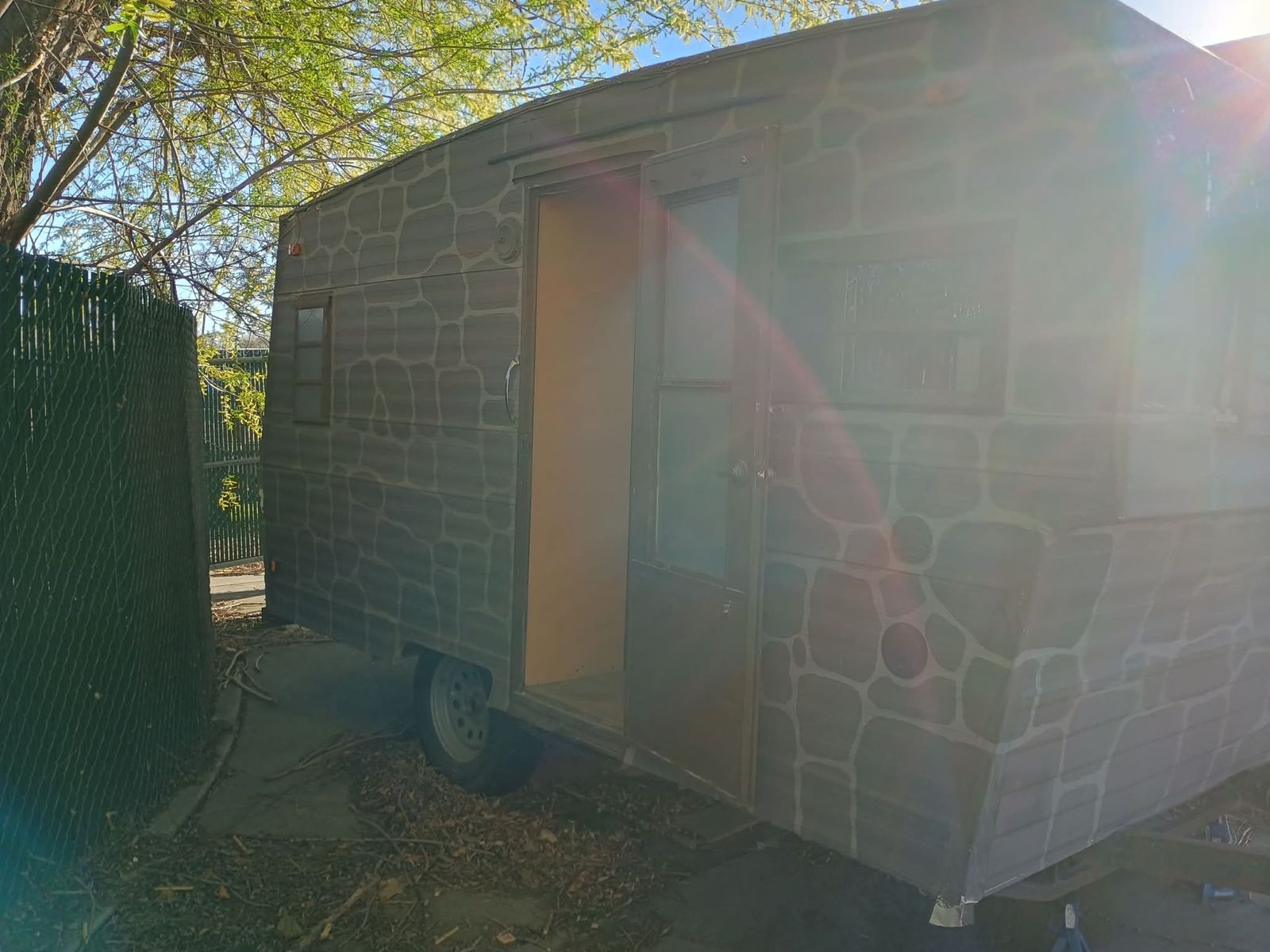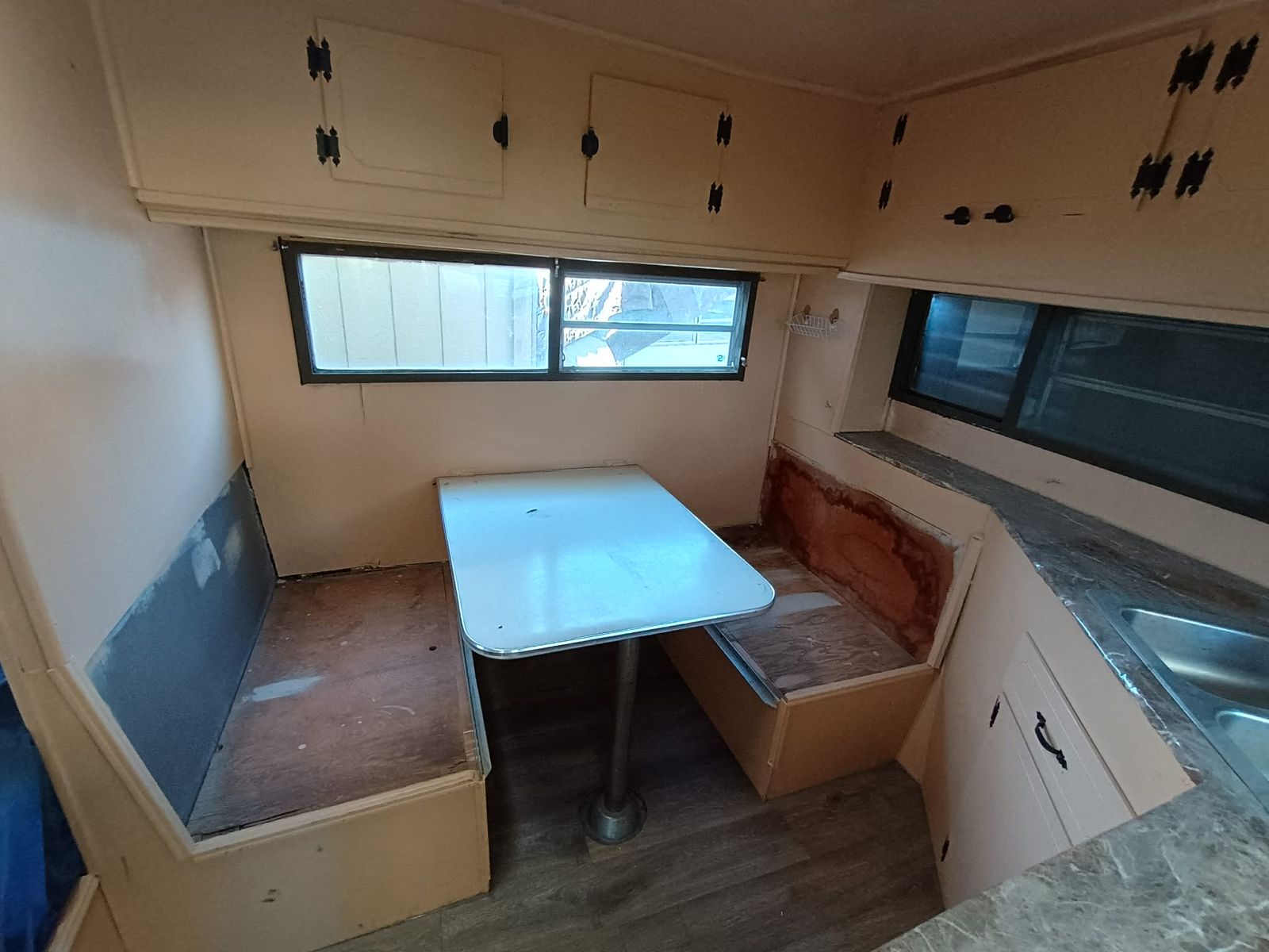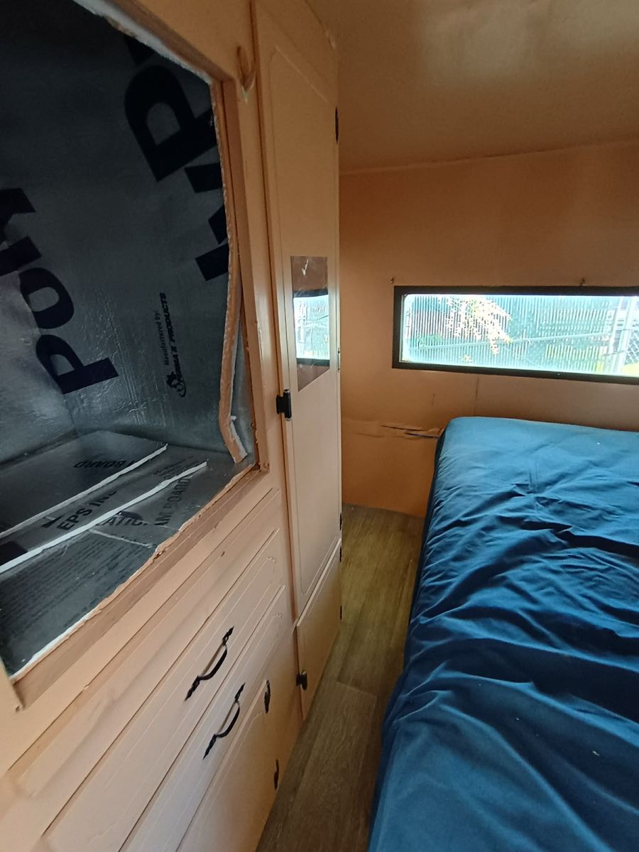 The floor was reinforced with fresh plywood and a new layer of vinyl, comes with 2 spare tires. No electrical, just use rechargeable lights (included) that have some magnetic mounts inside, and no plumbing. No AC. Works great for simple camping though. Has water tanks, but they are disconnected, I use a rechargeable faucet (included) and water gallon setup.