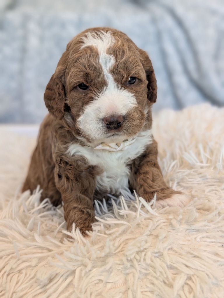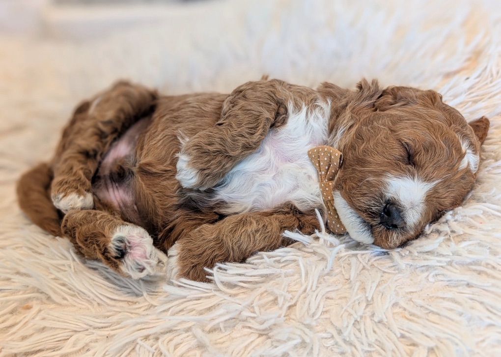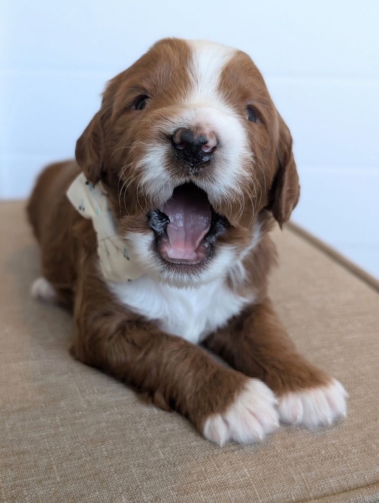 Because he is a 10 out of 10 for intensity you get very dark red puppies which are adorable!!