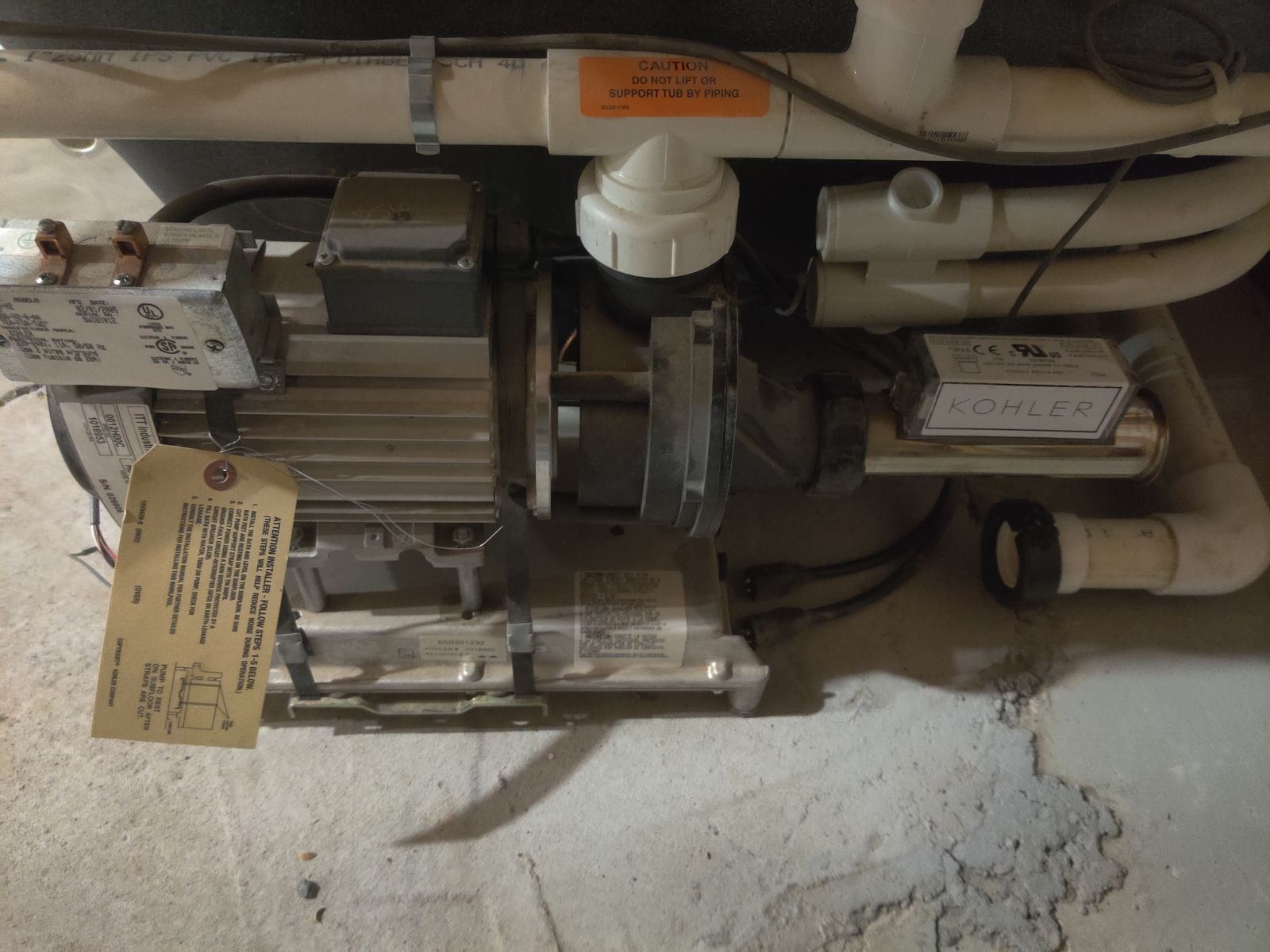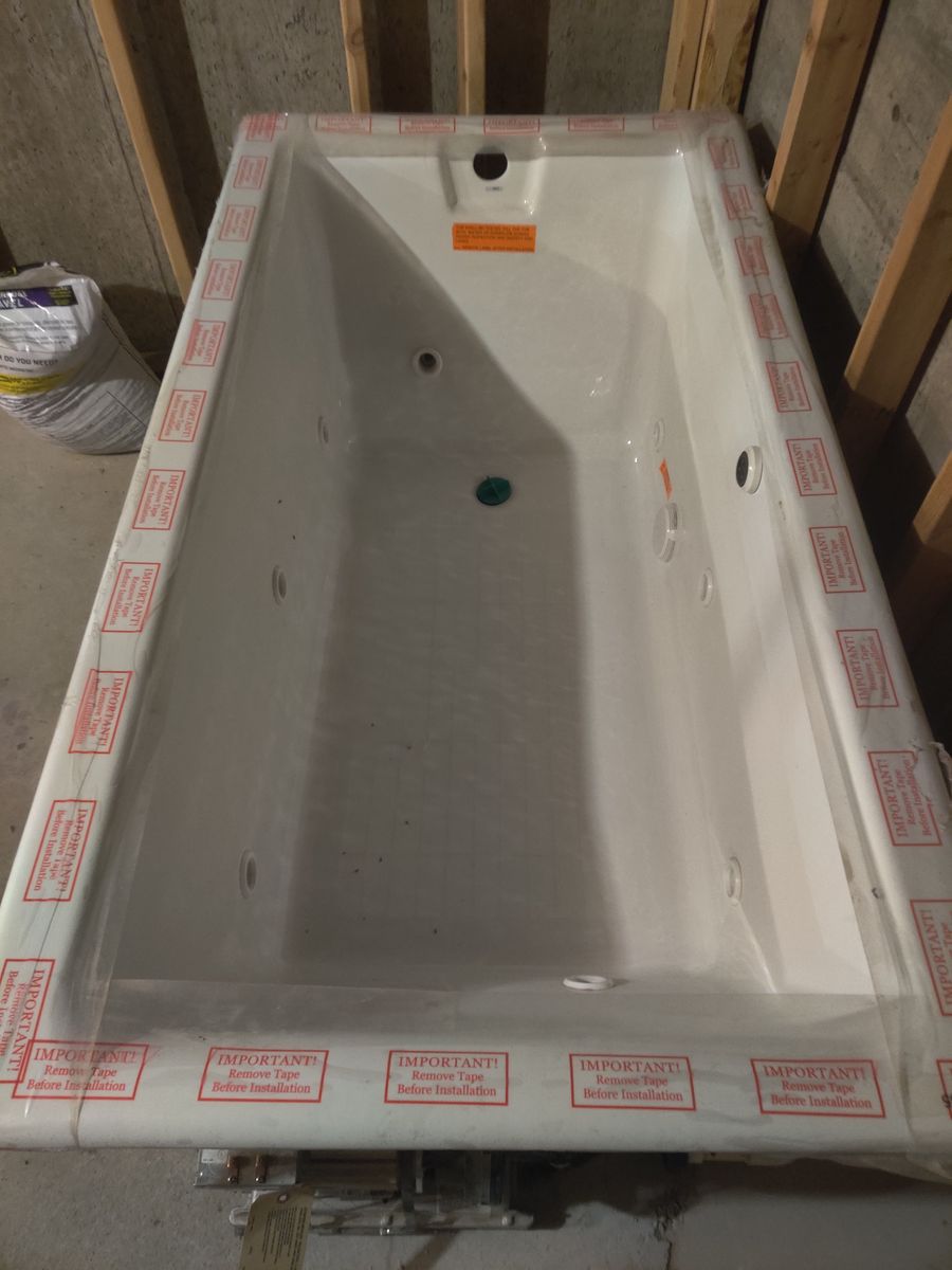 This tub was in the basement when I bought my house. It's never been used (still has protective film). The tub comes with the motor and all the piping. It measures 66"L x 36"W x 24"D.