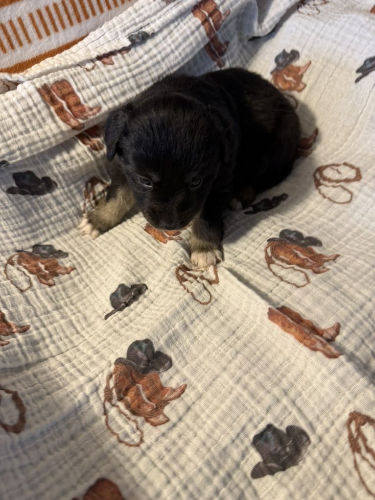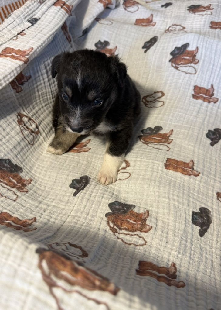 VenmoPups can be brought to northern utah or anywhere in between around time of weaning. These puppies are going to be so beautiful! They all have awesome personalities already. They will come with a blanket that smells like mom, bag of puppy food, first puppy shot and i start them all on potty and kennel training. Tails and dewclaws are done. They are super smart dogs and very easy to train. Should mature around 15 inches tall. And around 20 pounds. Black tri male is priced at $500 Black tri females $800