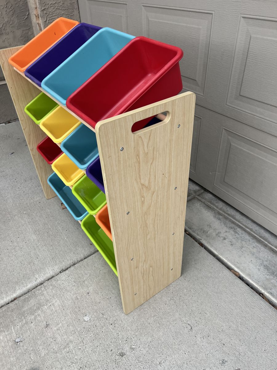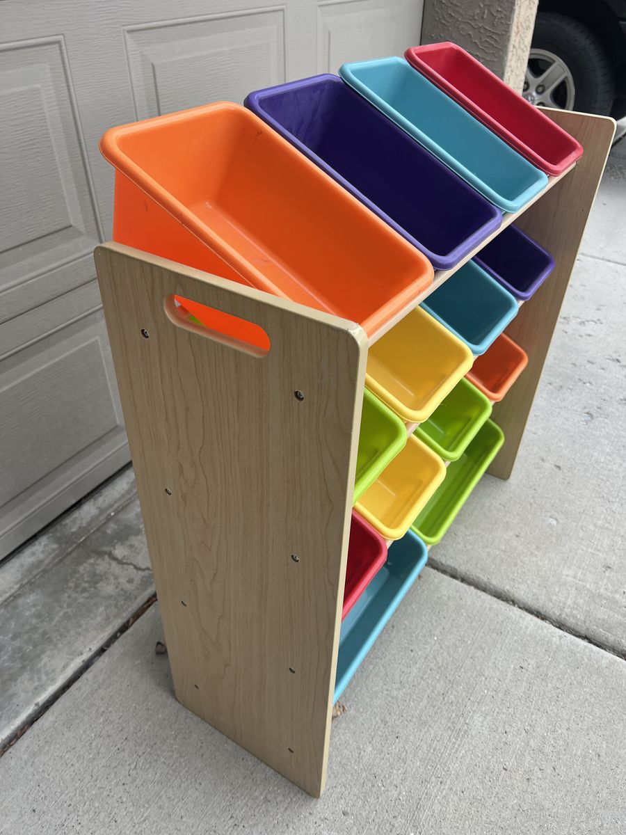 VenmoThis is darling and in bright, fun colors. All the bins make organized cleanup easy! Perfect for toys, books, crafts, and more. 33.5 wide 32 tall 11 deep Pick up in Draper. Cash or Venmo. $30.