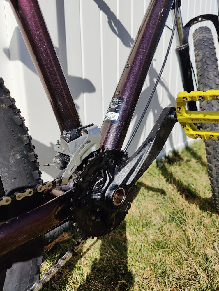 Shimano 2*9 drivetrain. Hydraulic disc brakes. Great bike for the local trails, new nica rider. Or just riding around the neighborhood.