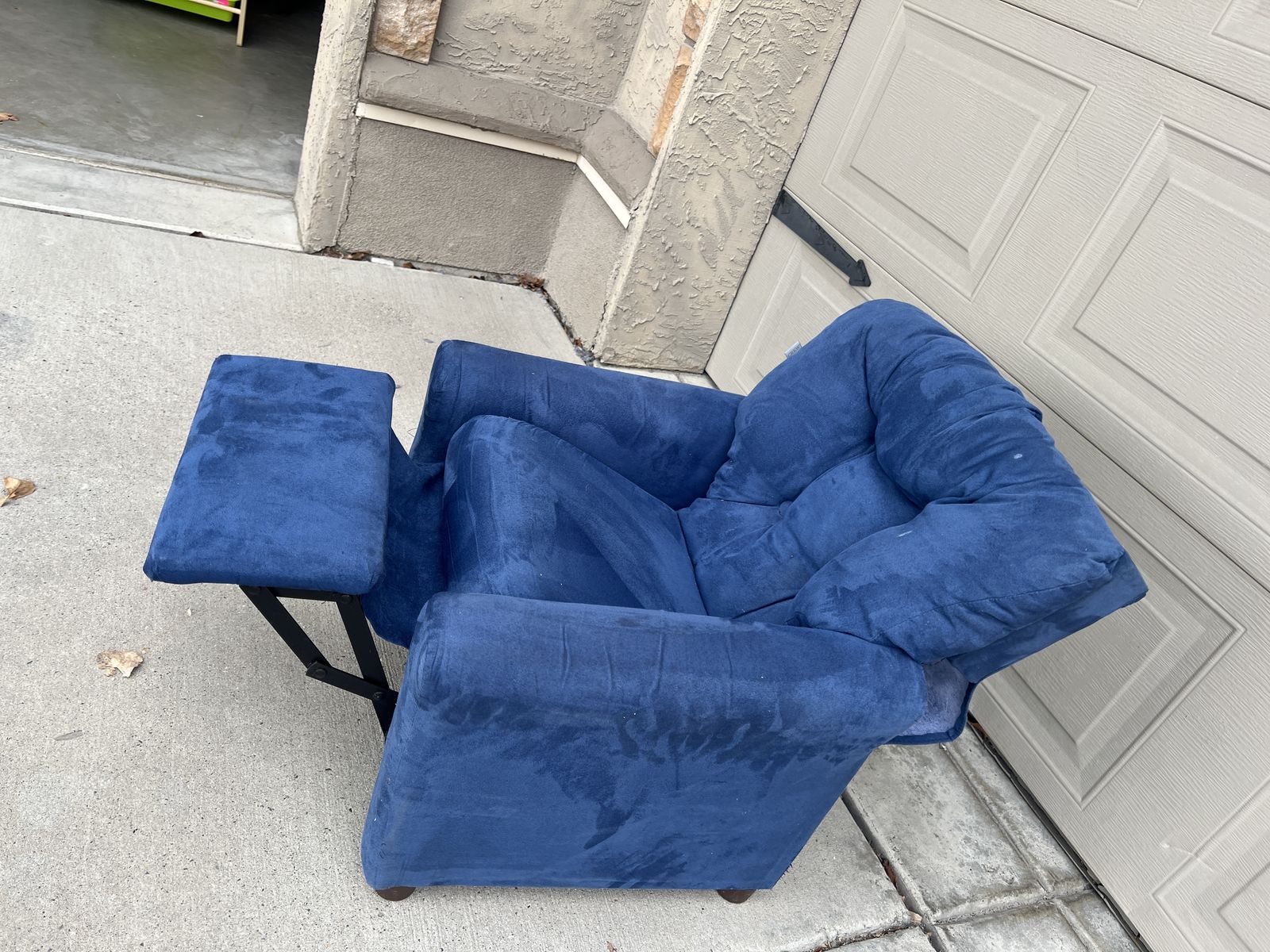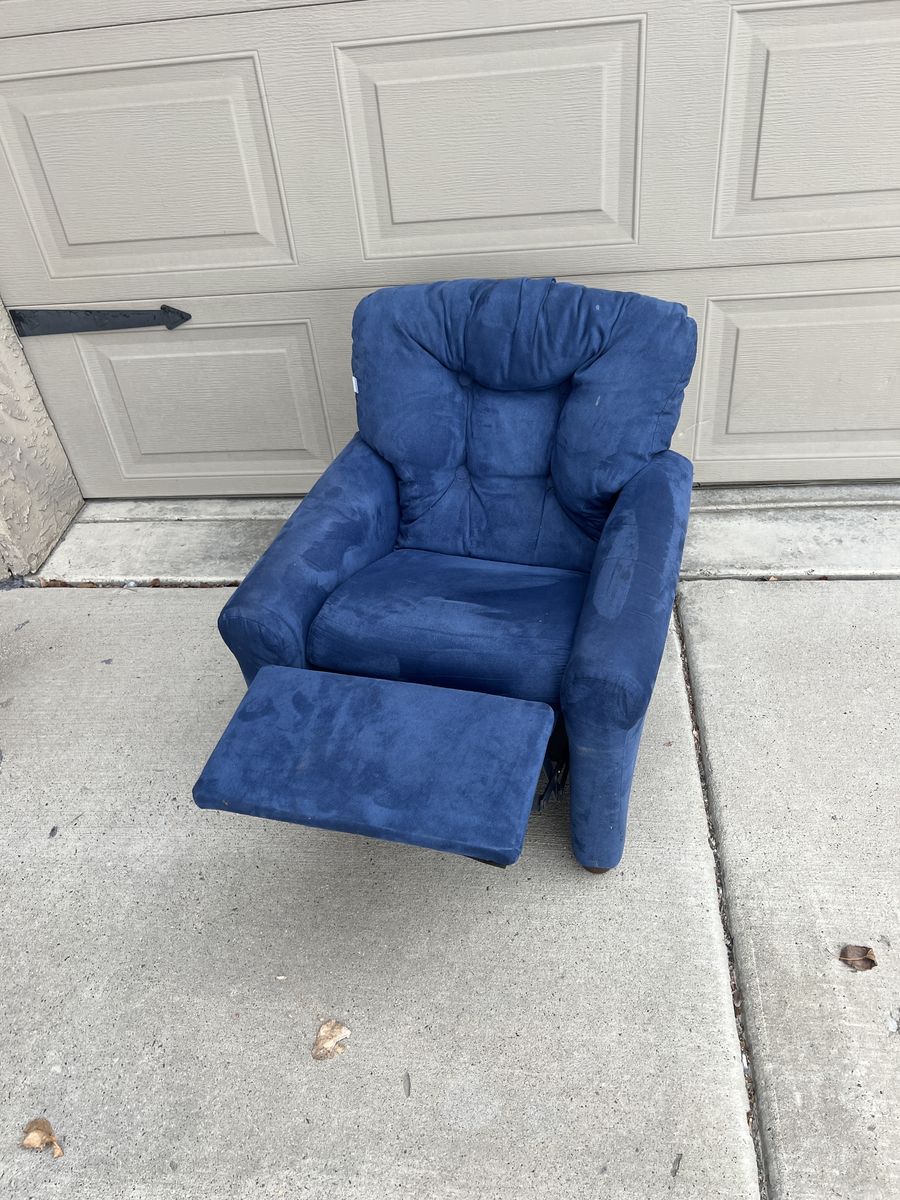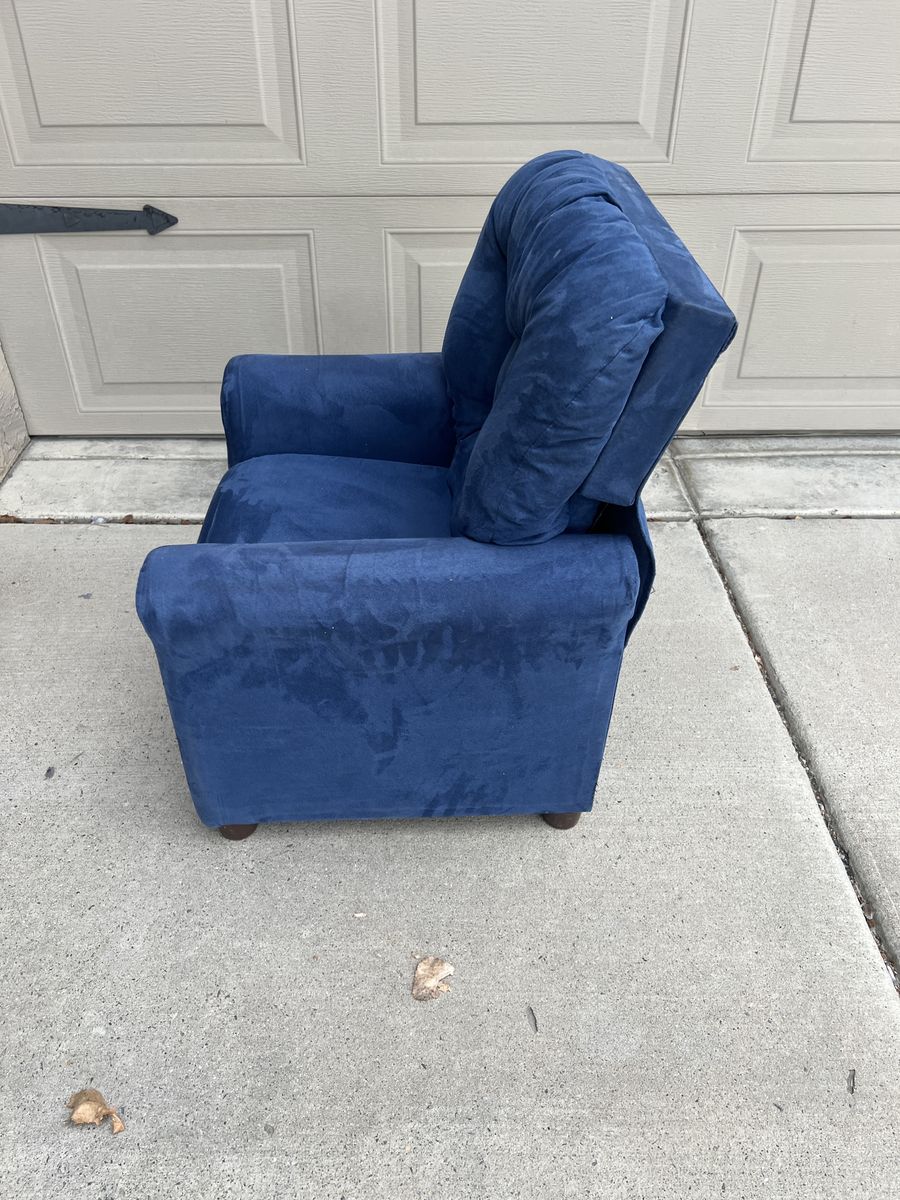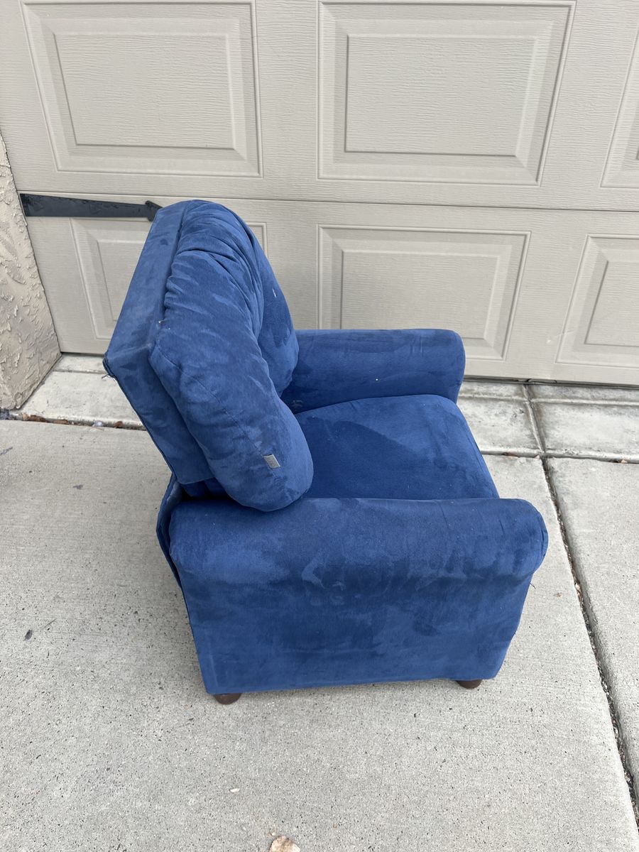 Venmoblue suede feel microfiber recliner chair for a child. Manual pushback is easy to operate. So darling. 2 small drops that should scrub off. See photo. 21 wide 25.5 tall 18 deep Pick up in Draper. Cash or Venmo. $50.