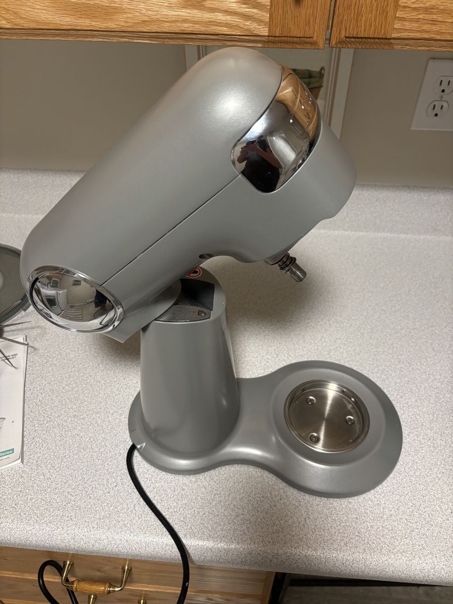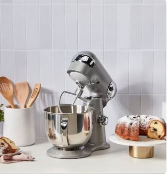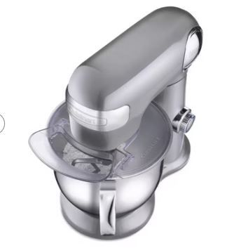 Delivering power, precision and performance, our stand mixer features a 500-watt motor, die-cast metal construction, and 12 speeds that allow for nuance and excellence in performing a variety of preparation tasks. The unit's tilt-back head allows for easy access to its 5.5-quart mixing bowl, while the included splash guard prevents messy countertops. Also included are a chef's whisk, dough hook, and flat mixing paddle. The mixing bowl and all accessories are dishwasher safe. Additionally, you can purchase a variety of attachments for the unit: a pasta roller and cutter, pasta extruder, meat grinder, frozen dessert maker, and spiralizer.