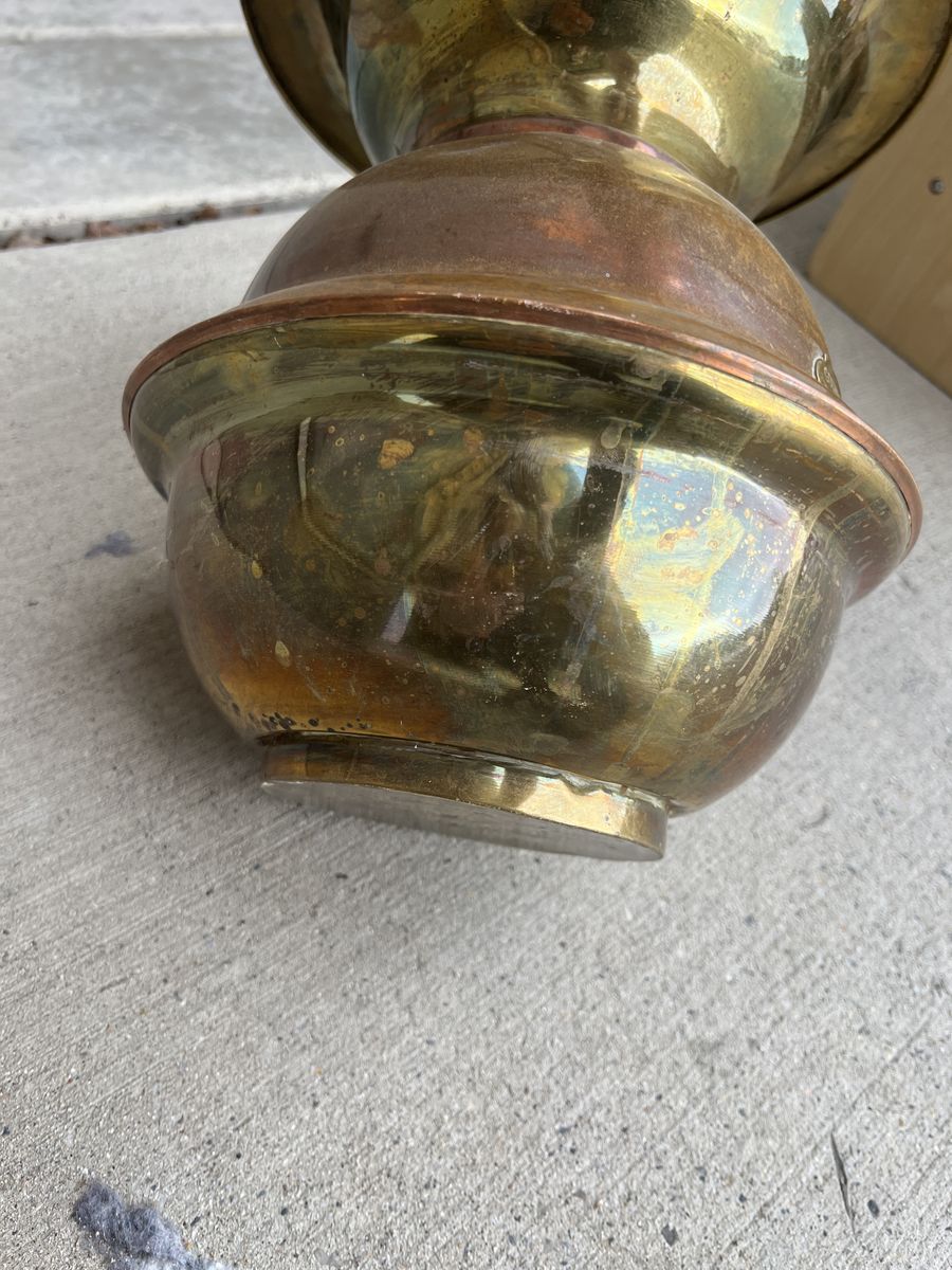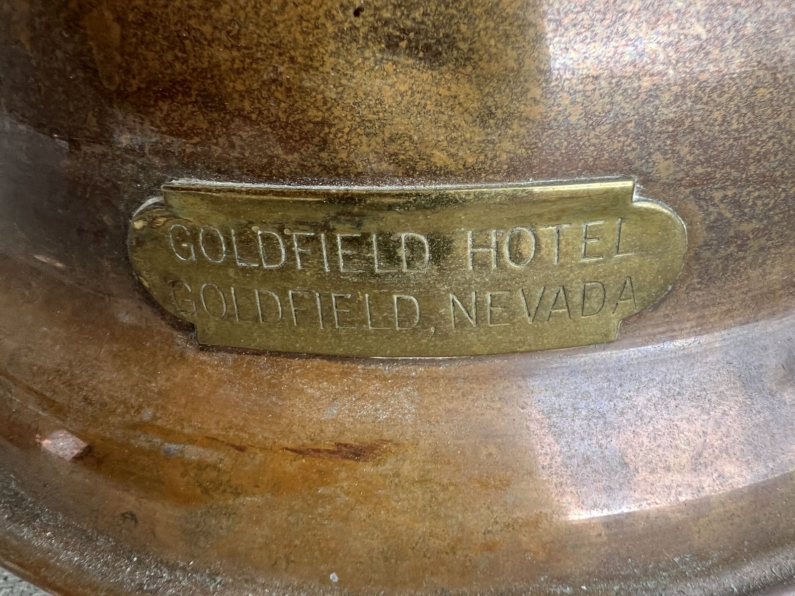 VenmoThis is a vintage 1970s reproduction of the original 1930s Goldfield Hotel spittoons. Has a lot of patina on it and even a couple of dents. There are some pennies stuck in the bottom. 11.5 tall 10 wide Pick up in Draper. Cash or Venmo. $40.