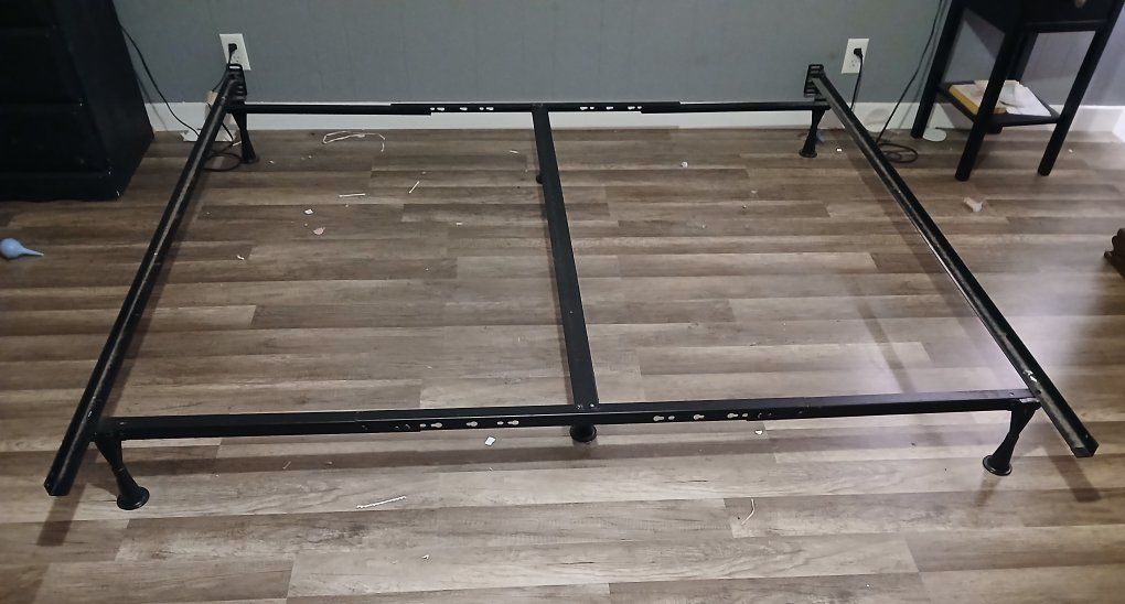 VenmoMetal bed frame, currently sized for a king mattress, but can fit a queen. Good shape. Don't contact me if you don't want to drive this far. $10 Cash or venmo. Check out my other listings!