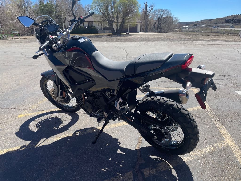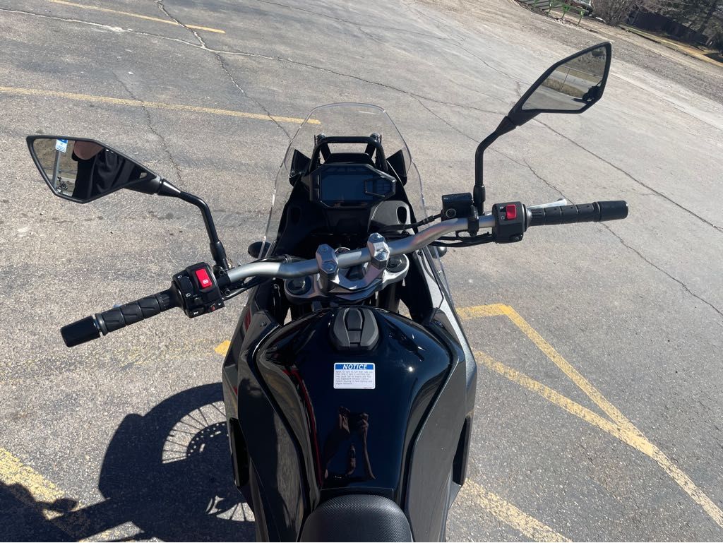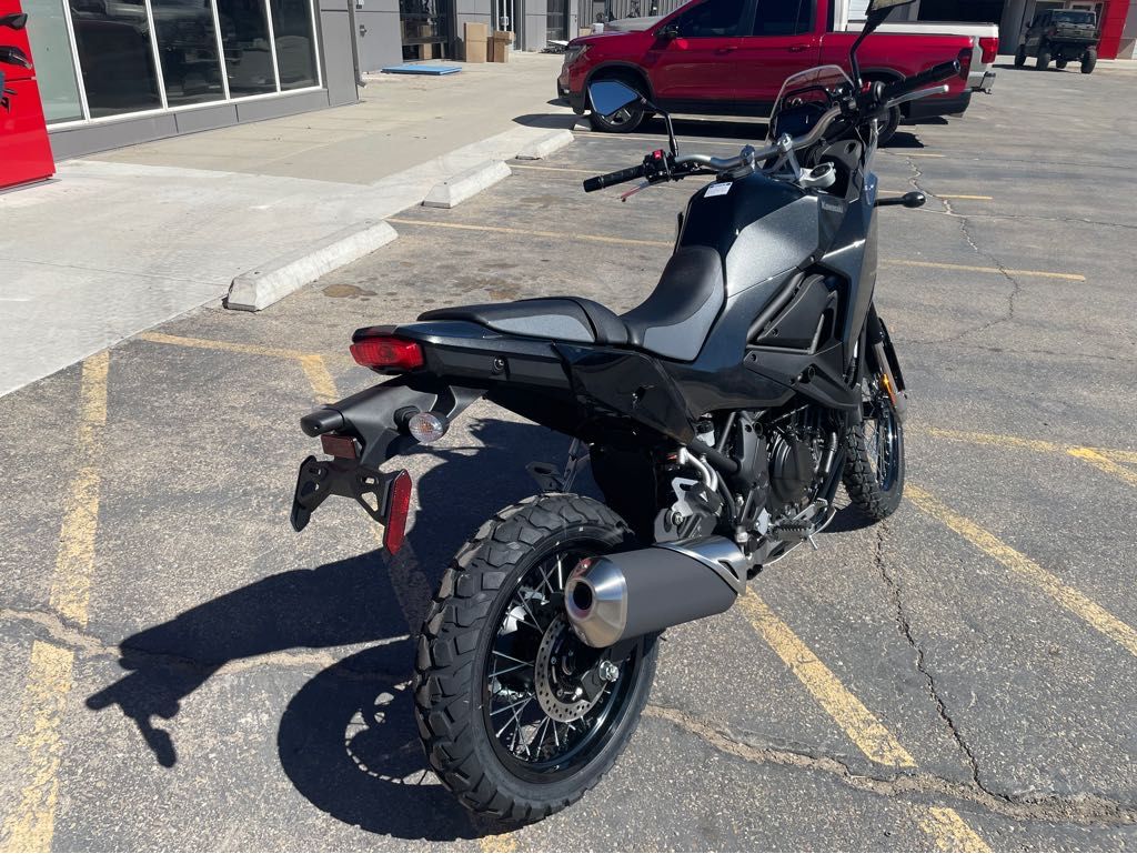 Adventure touring-ready with available accessory panniers and top case Engine Type: Parallel Twin Displacement: 27.5 cu. in. (451 cc) Bore and Stroke: Bore: 2.76 in. (70 mm); Stroke: 2.31 in. (58.6 mm) Cooling: Liquid Compression Ratio: 11.3:1 Fuel System: Gas Transmission: Manual Front Suspension: Inverted Fork Rear Suspension: Twin Sided Swing Arm Front Brakes: Hydraulic Disc Rear Brakes: Hydraulic Disc Front Tire: IRC GP-410: 90/90-21 (54S) Rear Tire: IRC GP-410: 140/70-17 (66S) Wheelbase: 61.2 in. (1555 mm) Seat Height: 34.3 in. (870 mm) Rake: 28 Trail: 4.1 in. (104 mm) Fuel Capacity: 4.2 gal. (15.9 L) Dry Weight: 383.7 lb. (174 kg.) Speedometer: Standard Tachometer: Standard Odometer: Standard