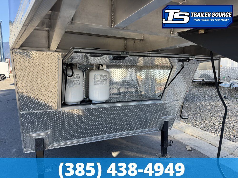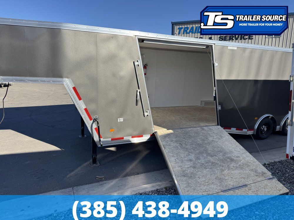 "More Trailer For Your Money" 8.5 x 38 Alcom All Sport Gooseneck Enclosed 10K Snowmobile Trailer – Ready To Work! 110V Power, Battery, D-Rings, Dovetail, Gooseneck, Heater, Roof Vent, RV Door, Screwless Exterior, Side Ramps, Spread Axles