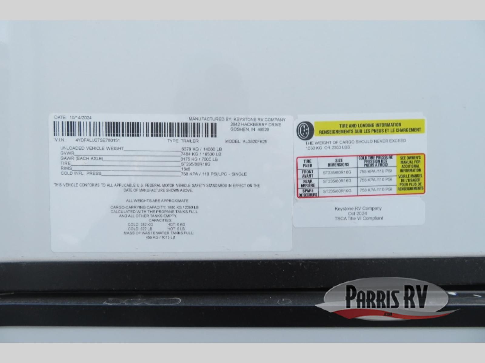 Keystone RV Alpine fifth wheel 3820FK highlights: