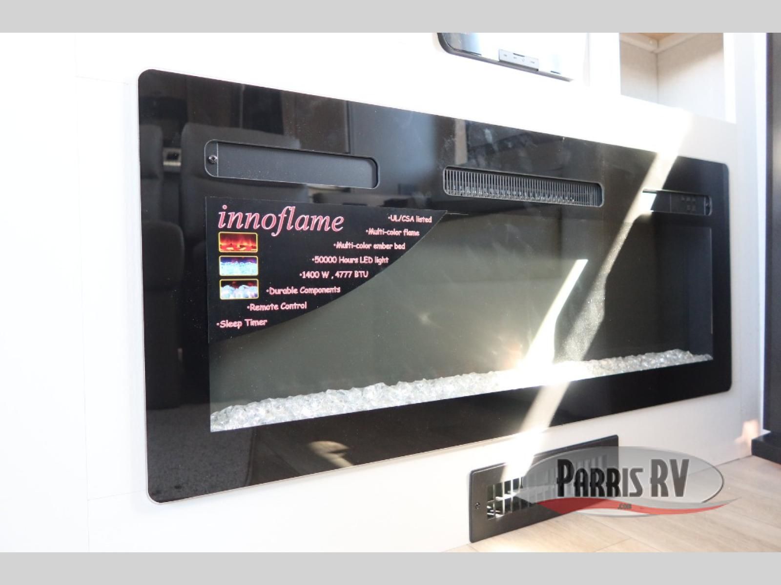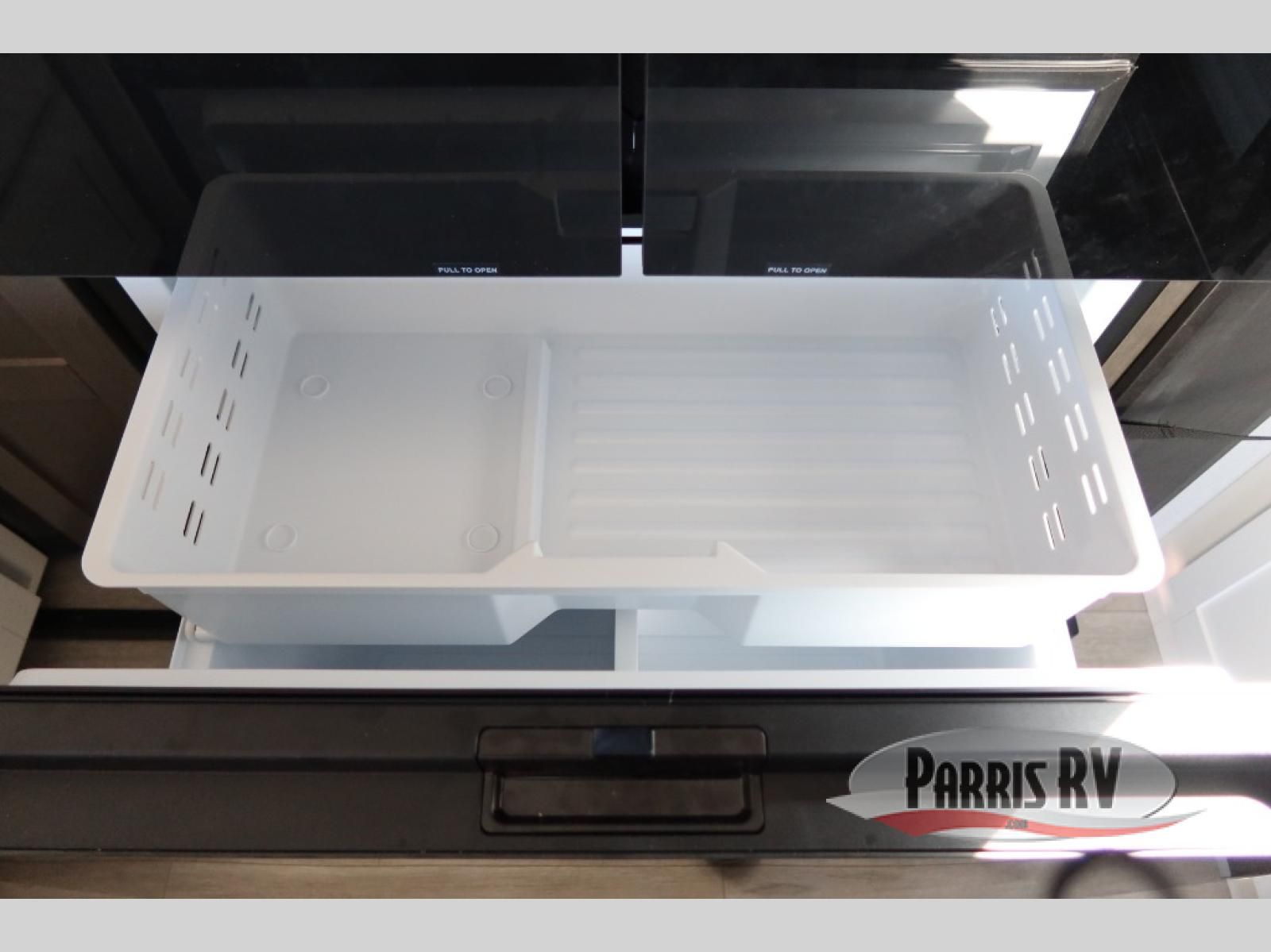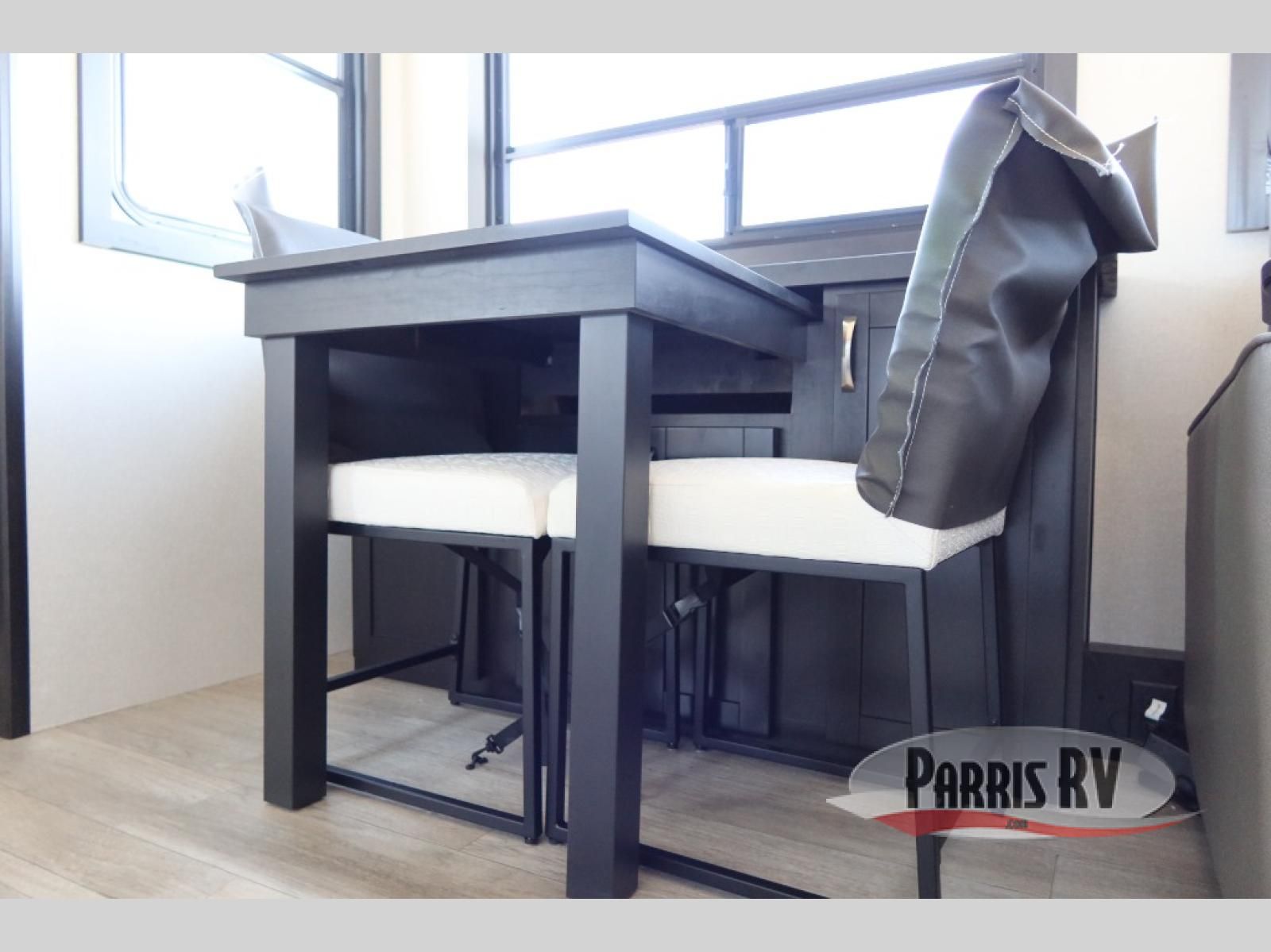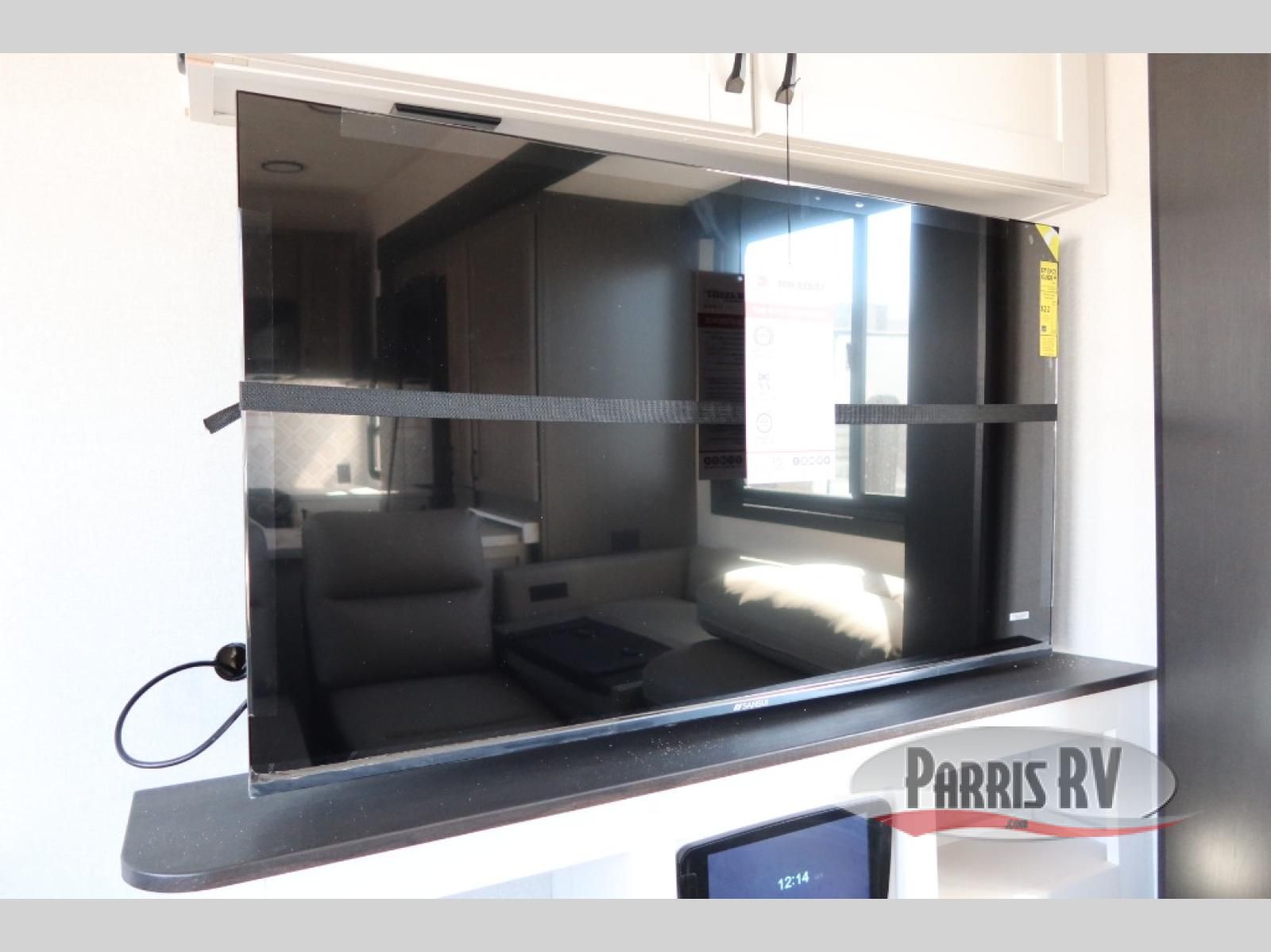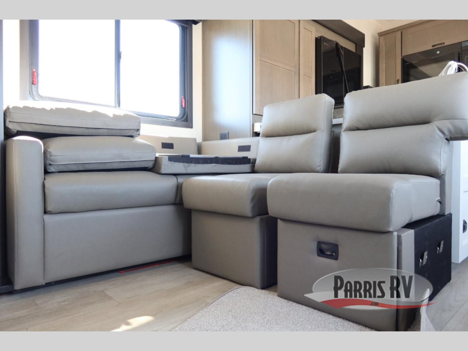 Get on the road with this toy hauler fifth wheel! The 14' garage is a playground for your toys, offering ample space for your ATV, motorcycle, or other gear. The loft above provides additional storage and an electric queen bed for a comfortable rest. The living room is a haven for relaxation, featuring an L-shaped sofa and a theater-style seat perfect for enjoying your favorite shows or movies on the TV. The kitchen is a culinary delight, equipped with a 12V refrigerator, microwave, overhead cabinets, and ample countertop space. The credenza with roll-out table is perfect for meal prep or serving, and the full bathroom provides a private space to freshen up, while the half bath option in the garage gives you more options. The cherry on top is that the front bedroom is a regal retreat, featuring a king bed, drawers, and a spacious walk-in closet.