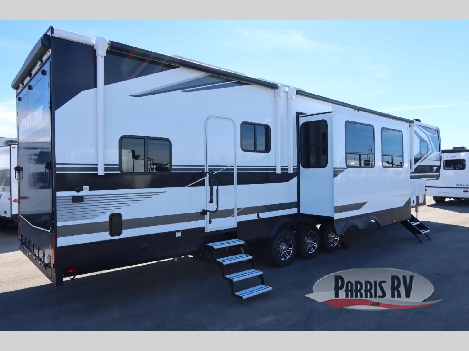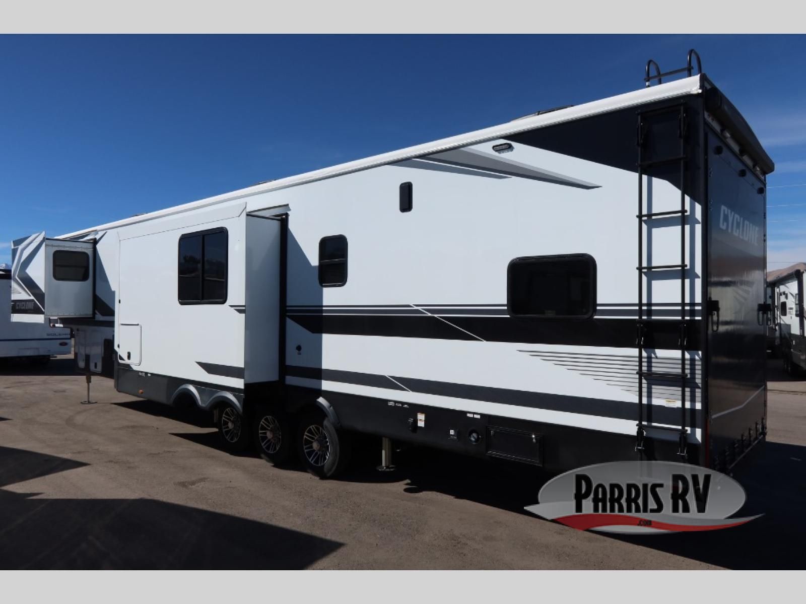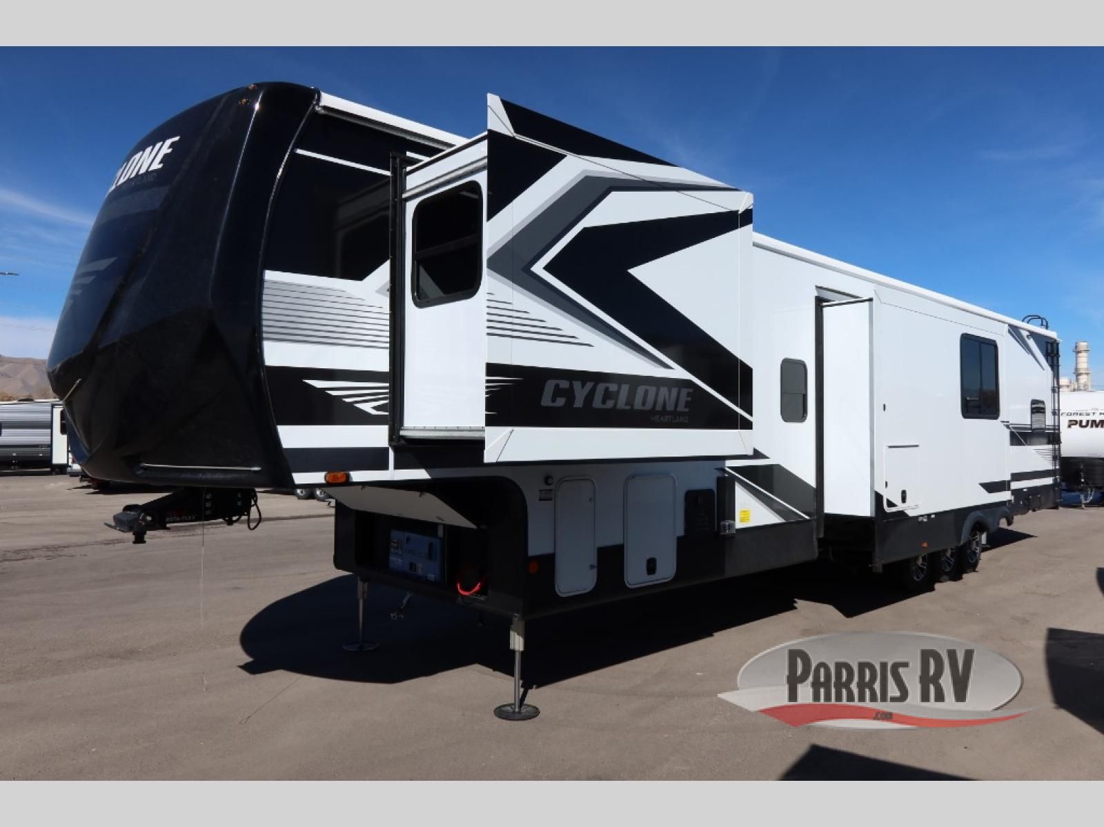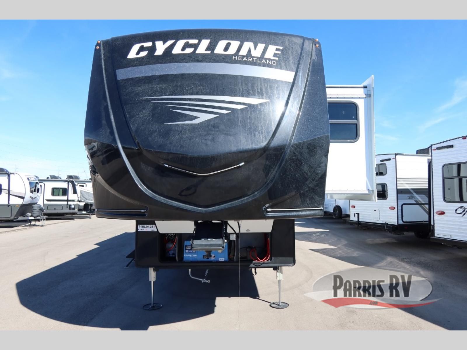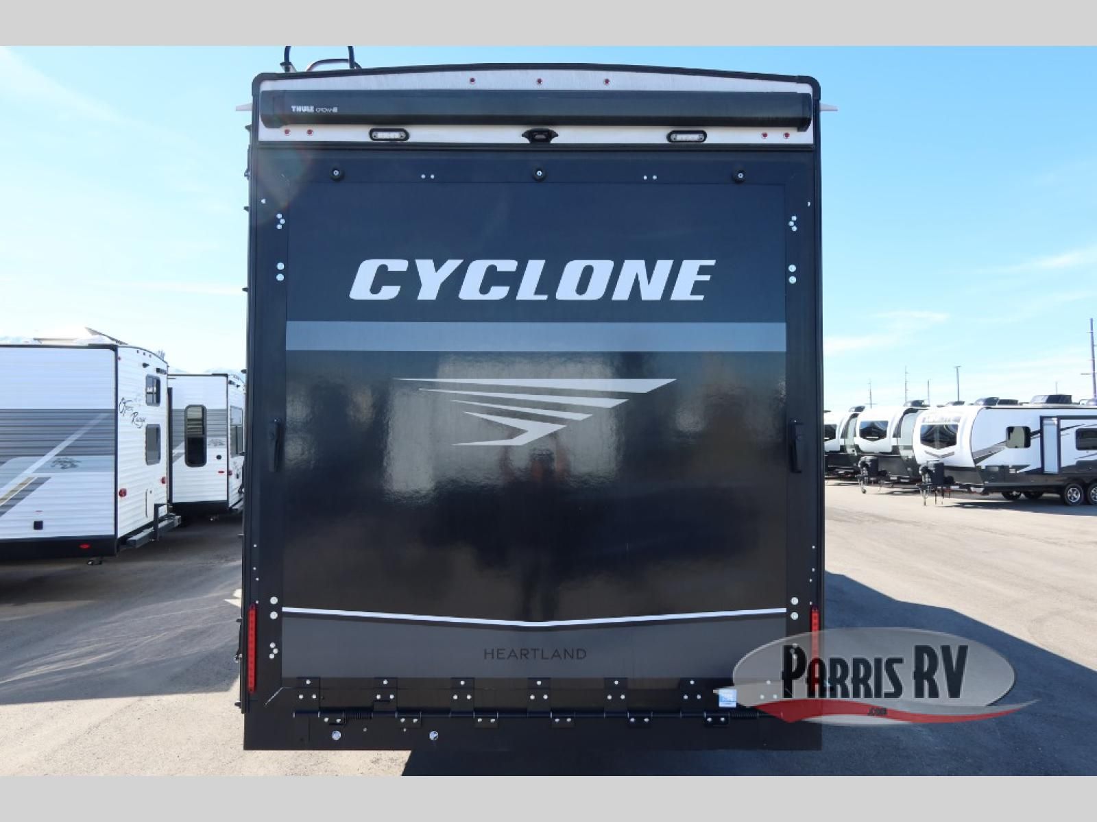 Satisfy your wanderlust with a Heartland Cyclone fifth wheel toy hauler! You won't have to sacrifice any luxury either, with indulgent features like the ducted, fully enclosed, and heated underbelly provides added protection and warmth. Inside, the LED interior lighting throughout ensures that every corner of your RV is bright and inviting, and the bathroom skylight brings in natural light and fresh air, creating a welcoming and refreshing space. Plus, the central command center with built-in tank monitoring keeps you informed and in control, making it easy to manage your resources. Also, the camping in comfort package includes diverse features such as Dexter axles with ABS and tow assist with sway mitigation, and the Keyed-Alike lock system ensures that all your locks are keyed the same, providing added security and convenience. Come find the perfect model for you today!
