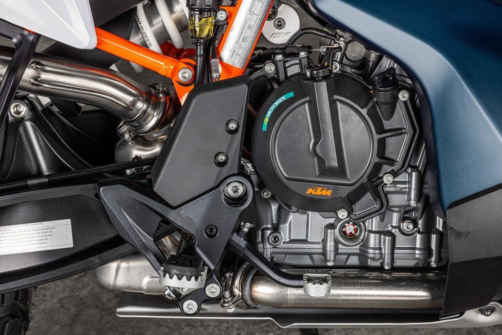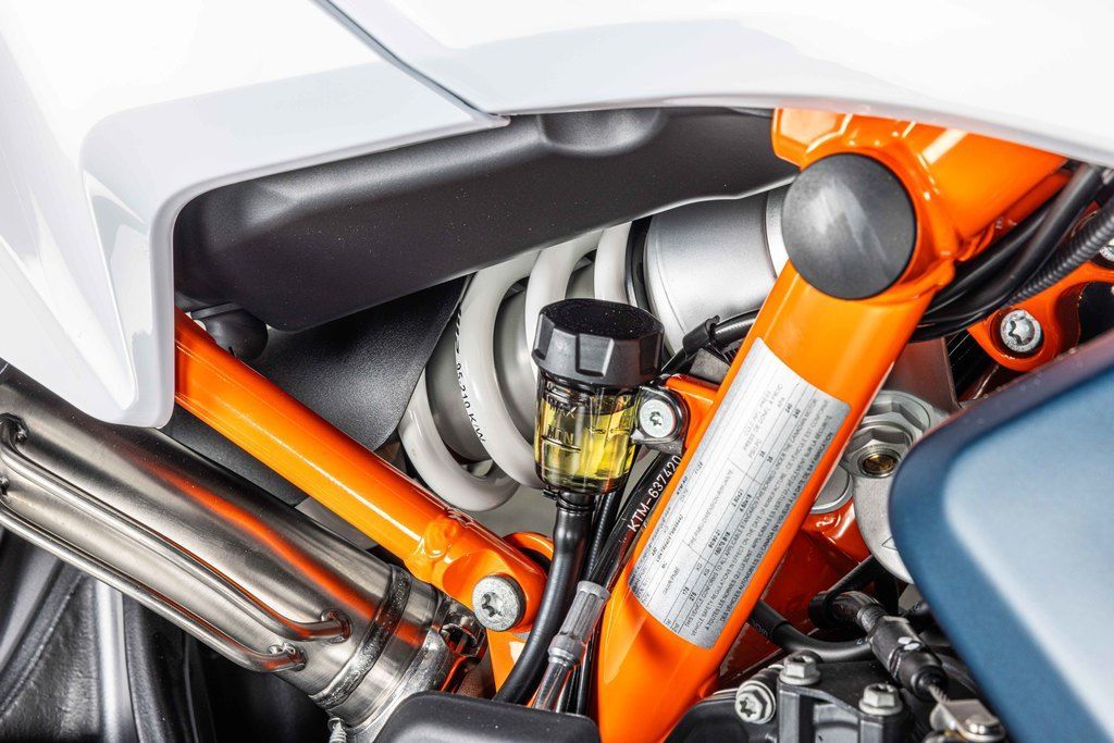 The overall geometry of the KTM 890 ADVENTURE R was developed for light handling, and comfort on long distance exploration missions - with unchallenged offroad capability. Strength was a big consideration in the design, so a tubular Chromoly steel frame is used with the engine acting as a stressed member to reduce weight and overall size. All design and engineering innovations are focused on being compact and light.