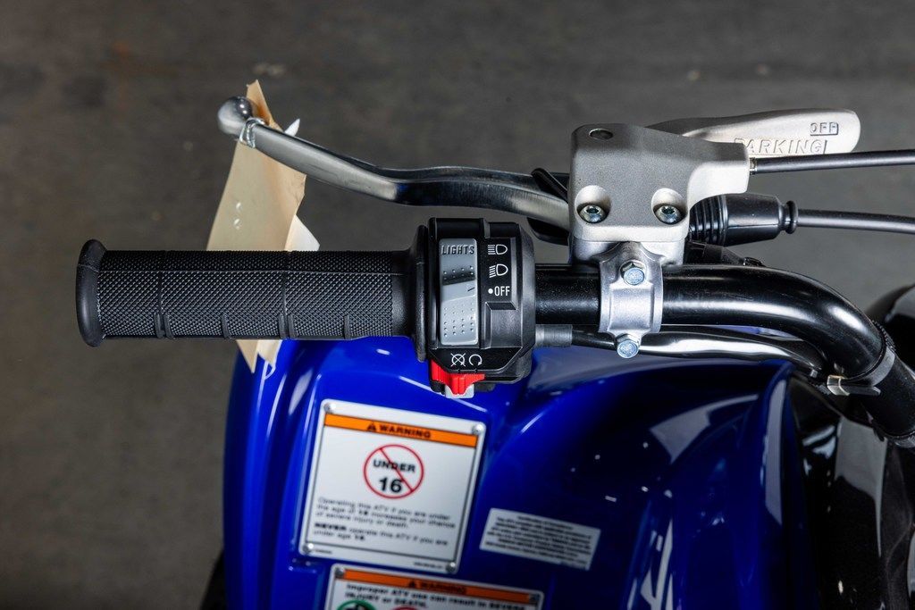 Thumb throttle lever has ergonomic shape for less fatigue and handlebar-mounted flip-type parking brake lever is simple to use.