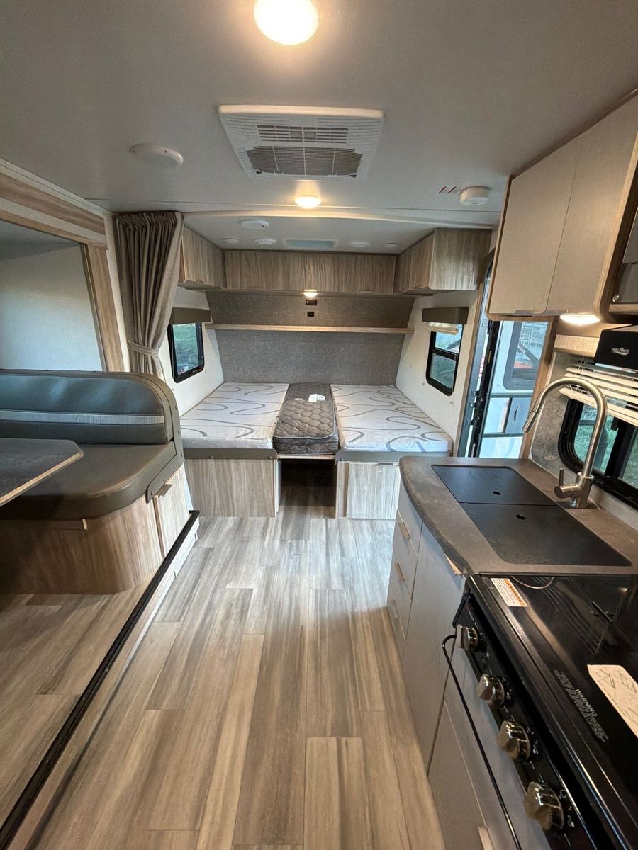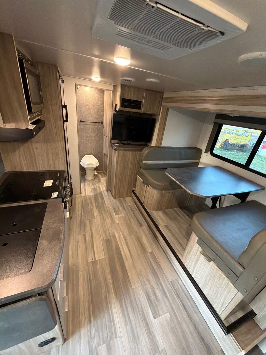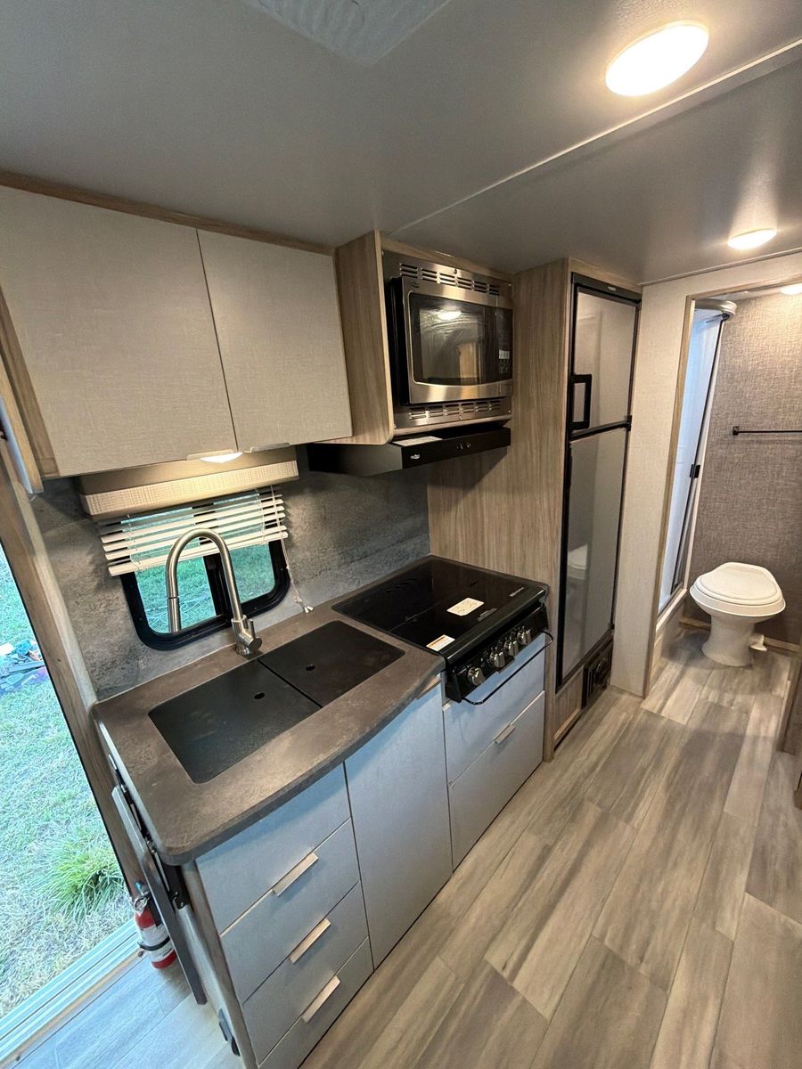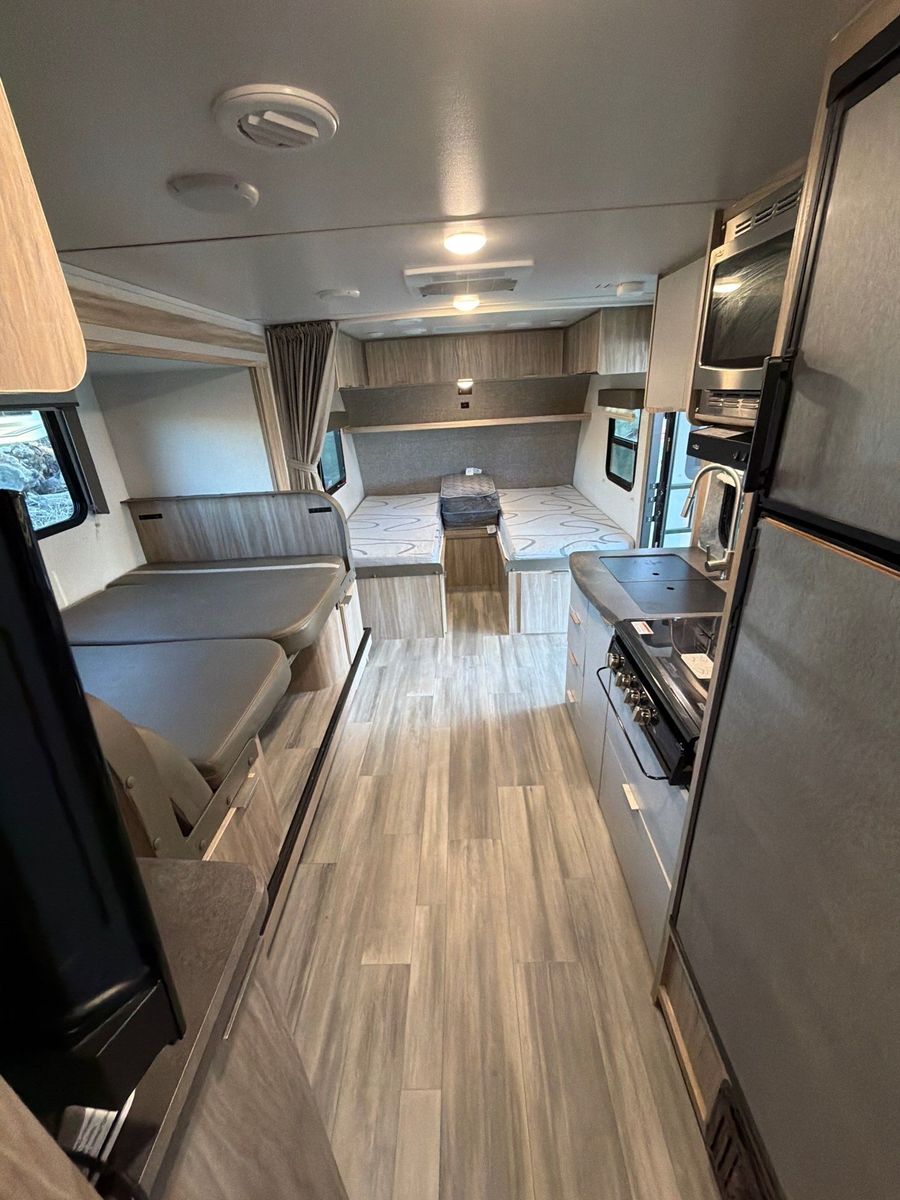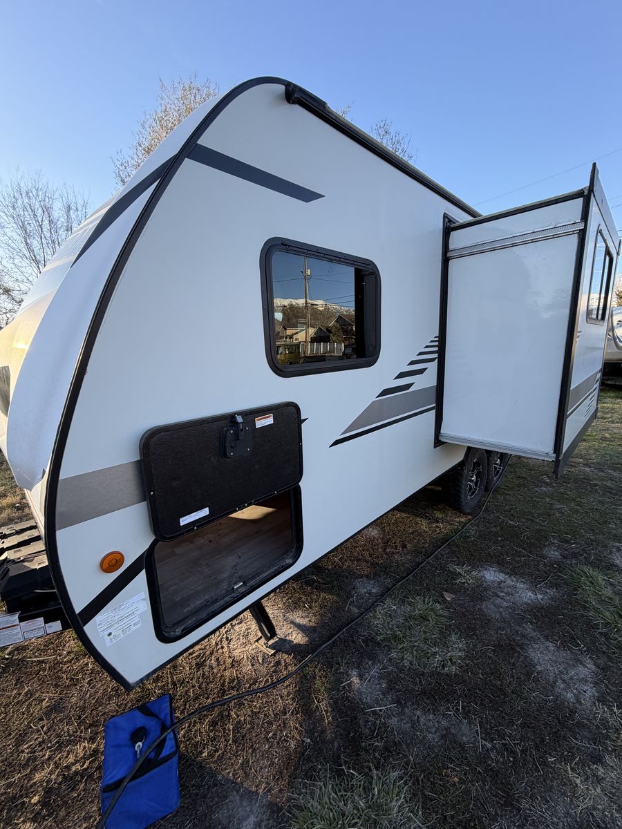Trailer description Winnebago is known for solid high-end campers and you definitely can feel It when you take this trailer! It has luxury accessories like one slide out, powered awning, powered stabilizer jacks, electric and propane fridge and water heater. Sleeps three adults and sleeps two adults with 2 to 3 small kids. It is 22 feet and weighs 4100 pounds dry.
