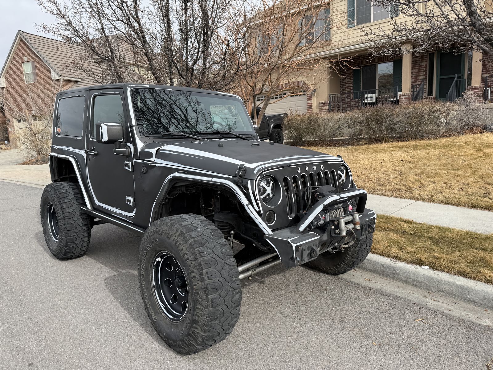 Full clutch replacement professionally done 700 miles ago. Fully trussed apex front and rear axels Regeared to 4.65 Hydro-assist steering 3” rear axel stretch Enhanced Interior roll cage Lockable front and rear differentials Cromely 14-10. axels all the way around New break lines for lift 4 inch lift with new Bilstein shocks 37” tires Full sound system and rubicon factory upgrades Full body armor on rear quarter panels