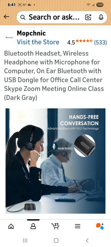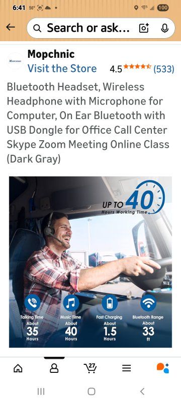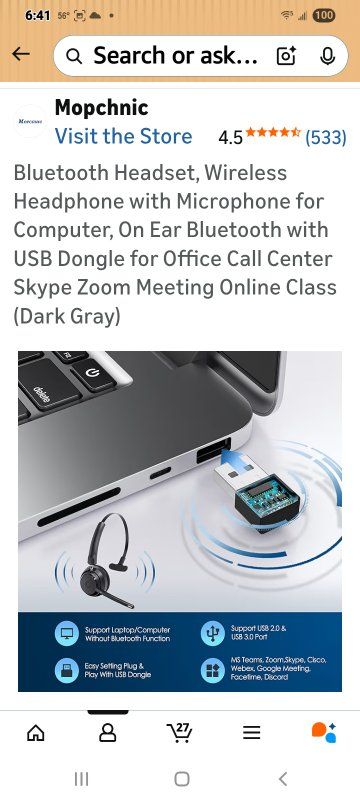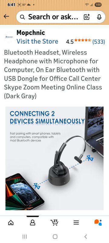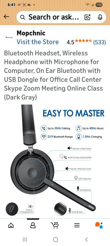 BLUETOOTH UNIVERSAL COMPATIBLEThe Mopchnic wireless headset adapts the latest Bluetooth version 5.0, which provides more stable connection and it’s compatible with cell phones, laptops, computers and other Bluetooth devices. You can use the USB dongle to connect to devices that don’t have Bluetooth capabilities AI Noise-Canceling MicrophoneOur wireless headset is equipped with an advanced AI noise-canceling microphone, which can effectively block background noise in noisy environments. This Bluetooth headset provides an immersive high-fidelity audio experience, perfect for call centers, online classes, front desk reception and more. BLUETOOTH USB DONGLE INCLUDEDThis Bluetooth headset comes with a USB dongle in the package, you can use our Bluetooth headset on a computers without Bluetooth function, just plug the USB dongle into your PC, turn on the Bluetooth headset, they will pair automatically. Perfect for call centers, offices, remote work, online classes, Skype, Zoom, Google Meetings, and more SUPPORT SIRI AND MUTE FUNCTION This Bluetooth Headset supports Siri voice assistant and mute function. The independent MUTE button on the microphone is at your fingertips. Voice prompt mute on/off. The Mute button works only during a call. One key to turn on/off the Bluetooth headset and enter pairing mode, single click to answer, reject and hang up calls. Note: MFB can only pick up mobile phone calls. Mute function only active during calls or meetings COMFORTABLE & LONG BATTERY LIFEThis Bluetooth headset provides you with a comfortable wearing experience for intensive use throughout the day. Comfortable and breathable earmuff ensure all-day comfort, and the adjustable headband fits any head shape without slipping off your head. This Bluetooth headset can be fully charged in 1.5 hours and provides up to 35 hours of talk time or 40 hours of music playback (70% volume) when fully charged.