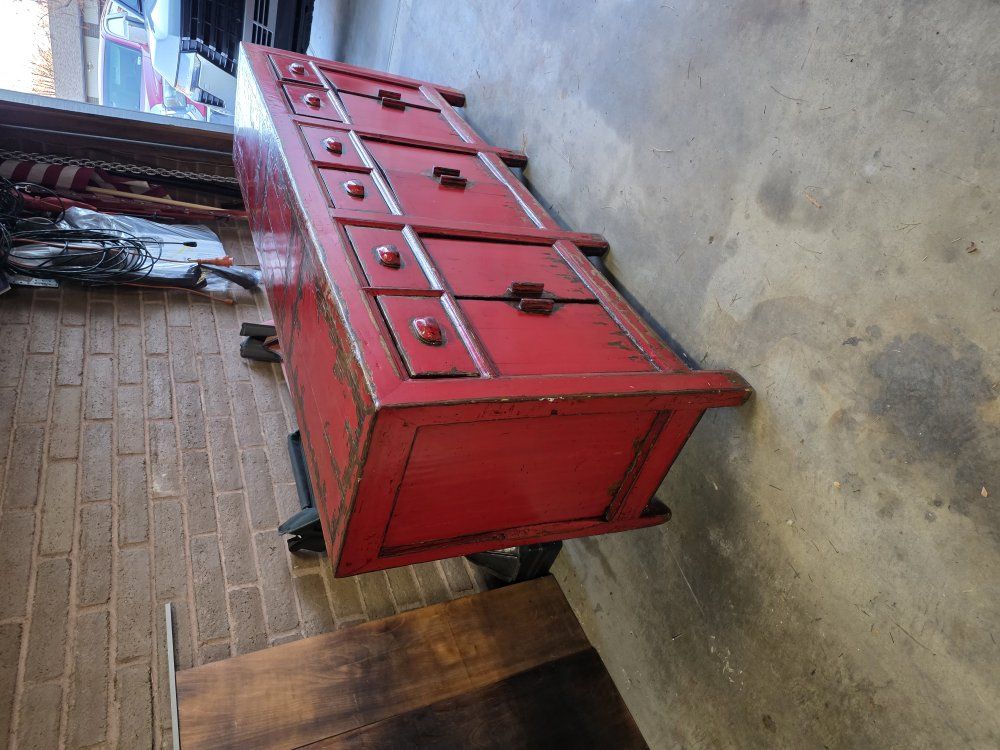 VenmoUnique Buffet Table, stunning accent peice. 86" long 19 1/2" wide 37 1/2 tall. This vibrant buffet is an eye catcher and always gets comments.