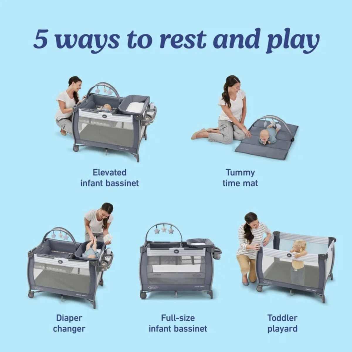 Toddler playpen mode included – transition easily from infant sleeping to toddler play space.