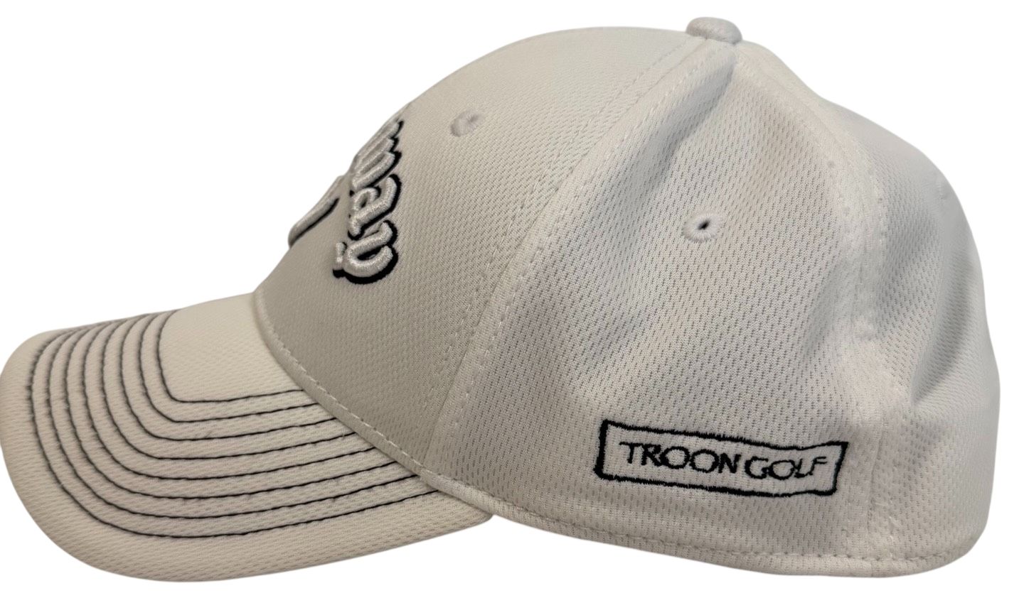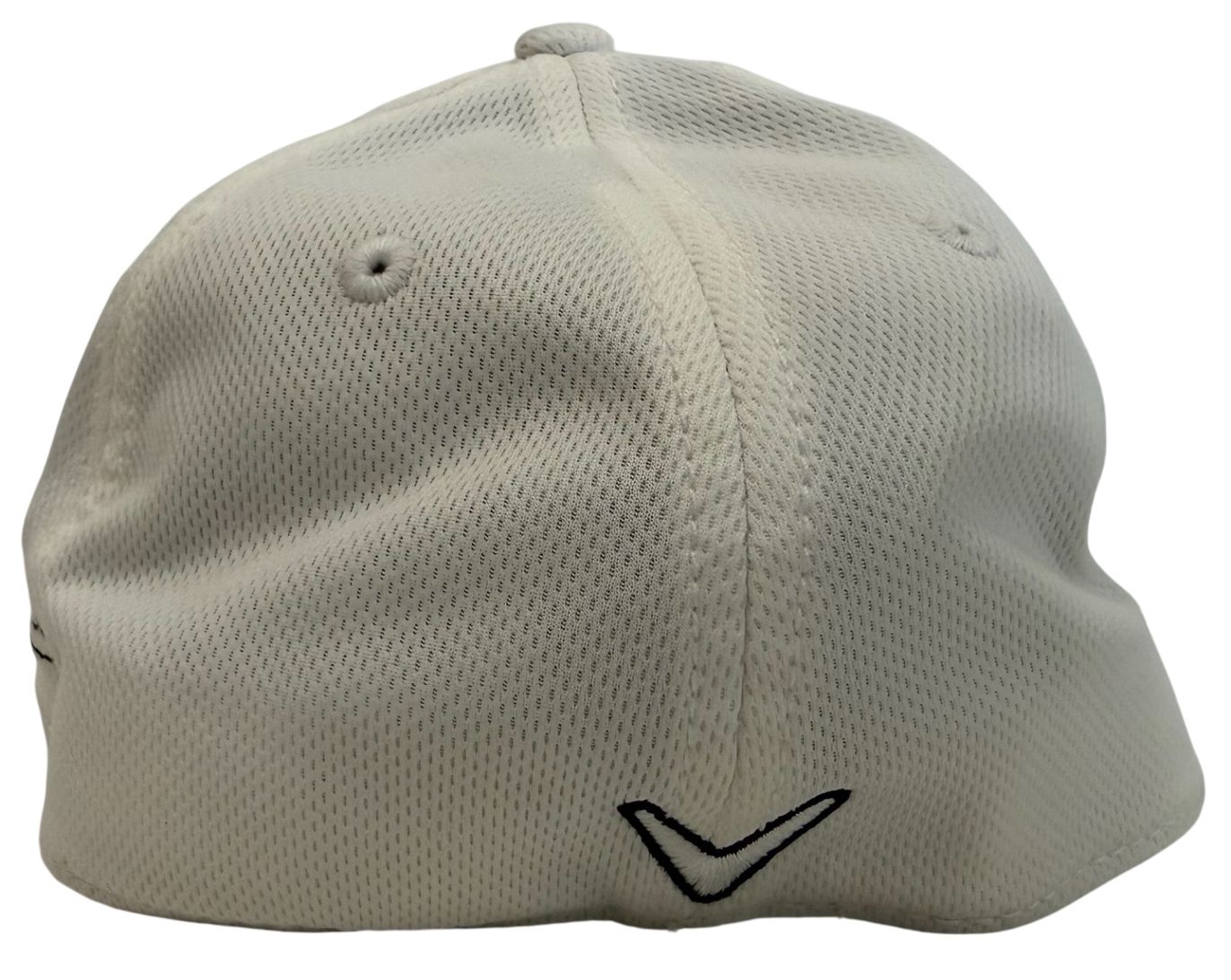 Hat is pre-owned, please review all pictures for any signs of wear and tear. The Callaway Liquid Metal Golf Embroidered Raised Logo White Fitted Golf Hat is a stylish and practical accessory for golf enthusiasts. Made from polyester blended fabric, this hat is perfect for both activewear and casual occasions. The embroidered logo adds a touch of sophistication, while the stretch feature ensures a comfortable fit. Designed for all seasons, this hat is ideal for outdoor sports like golfing, making it a must-have for any golfer looking to stay stylish while out on the course.