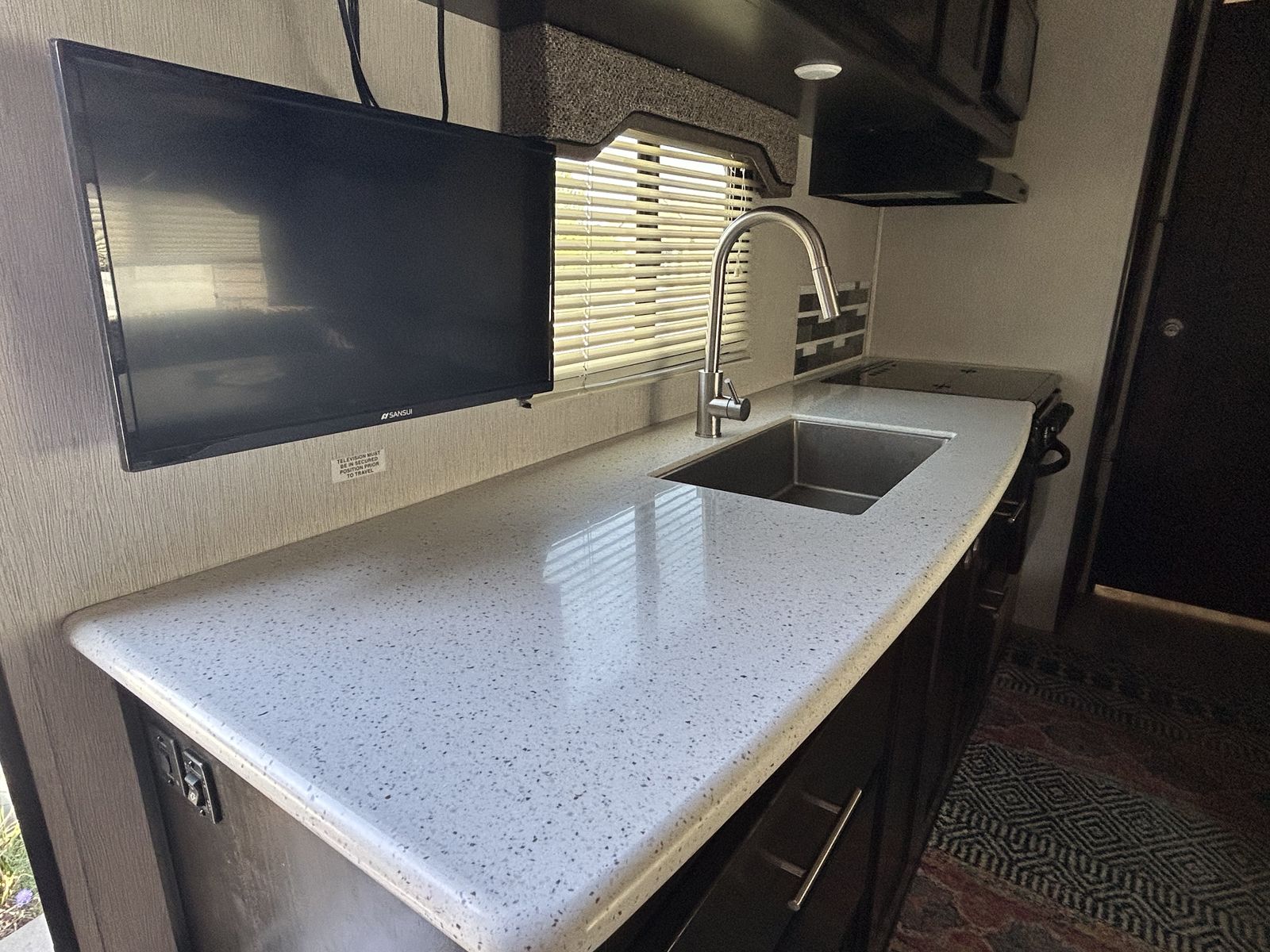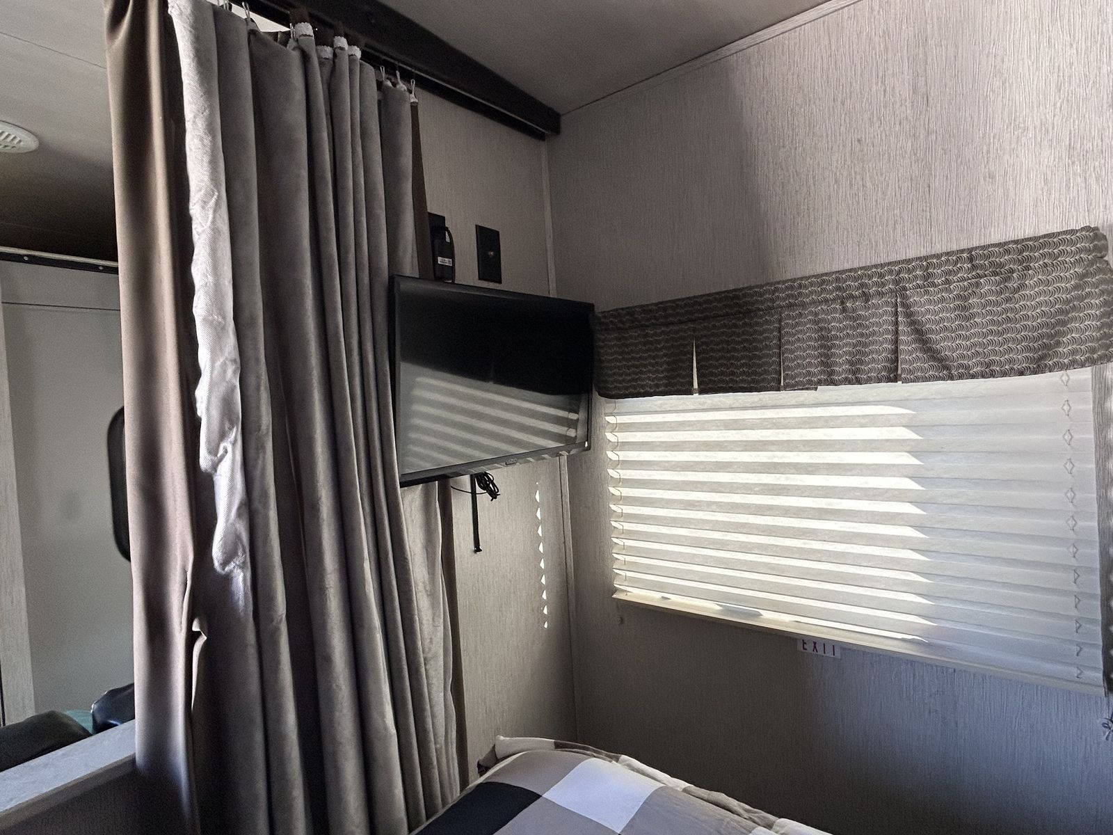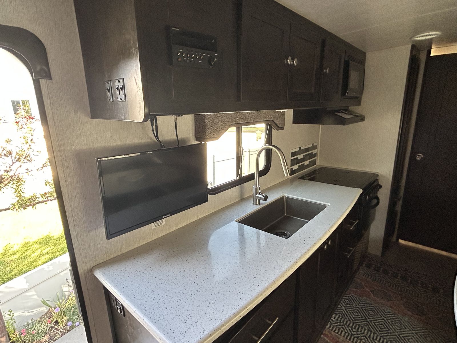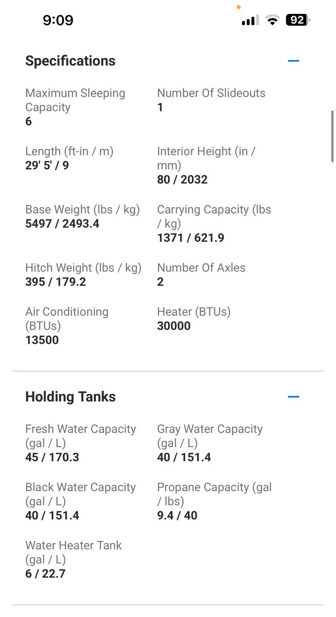 Heartland 22 FBS travel trailer. Sleeps up to 6 people. Queen bed, sofa conversion bed, and dinette bed. Large countertop. 2 TVs. Has been an excellent trailer for my family. I am the original owner. I have made a few upgrades, but it is mostly original. Upgrades include: Lithium Ion Batteries, residential mattress (only has about 14 nights of sleep on it) and new tires (have around 1000 miles of use). Total miles on the trailer is around 7000 miles. Dry weight 5500 lbs, max weight 6800 lbs, hitch weight is only 395 lbs dry. The low hitch weight helps to reduce squatting and makes for an easier tow. Wide track axles help it track when towing. This would be a great trailer if towing with an SUV or 1/2 ton truck.