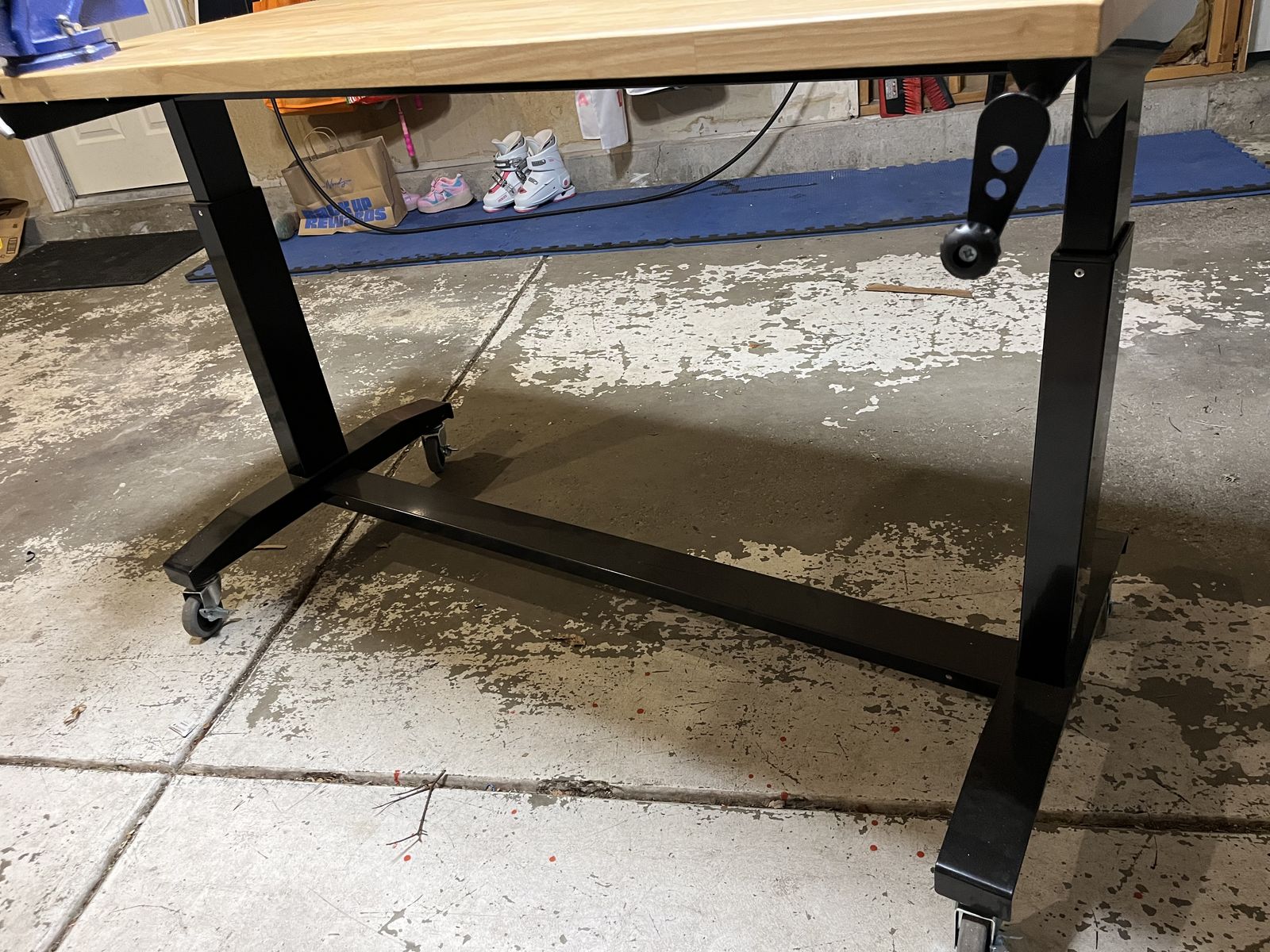 VenmoI bought this about a year ago from Home Depot for $250. Hardly have used it. I really don’t work in the garage anymore and crap just gets piled on top of it. It adjusts up and down. Has wheels so moves with ease. Not many scratches in the top. I put a Forge vice on the corner. I can remove the vice it and the table is $100 or it can come with it for $125 total.