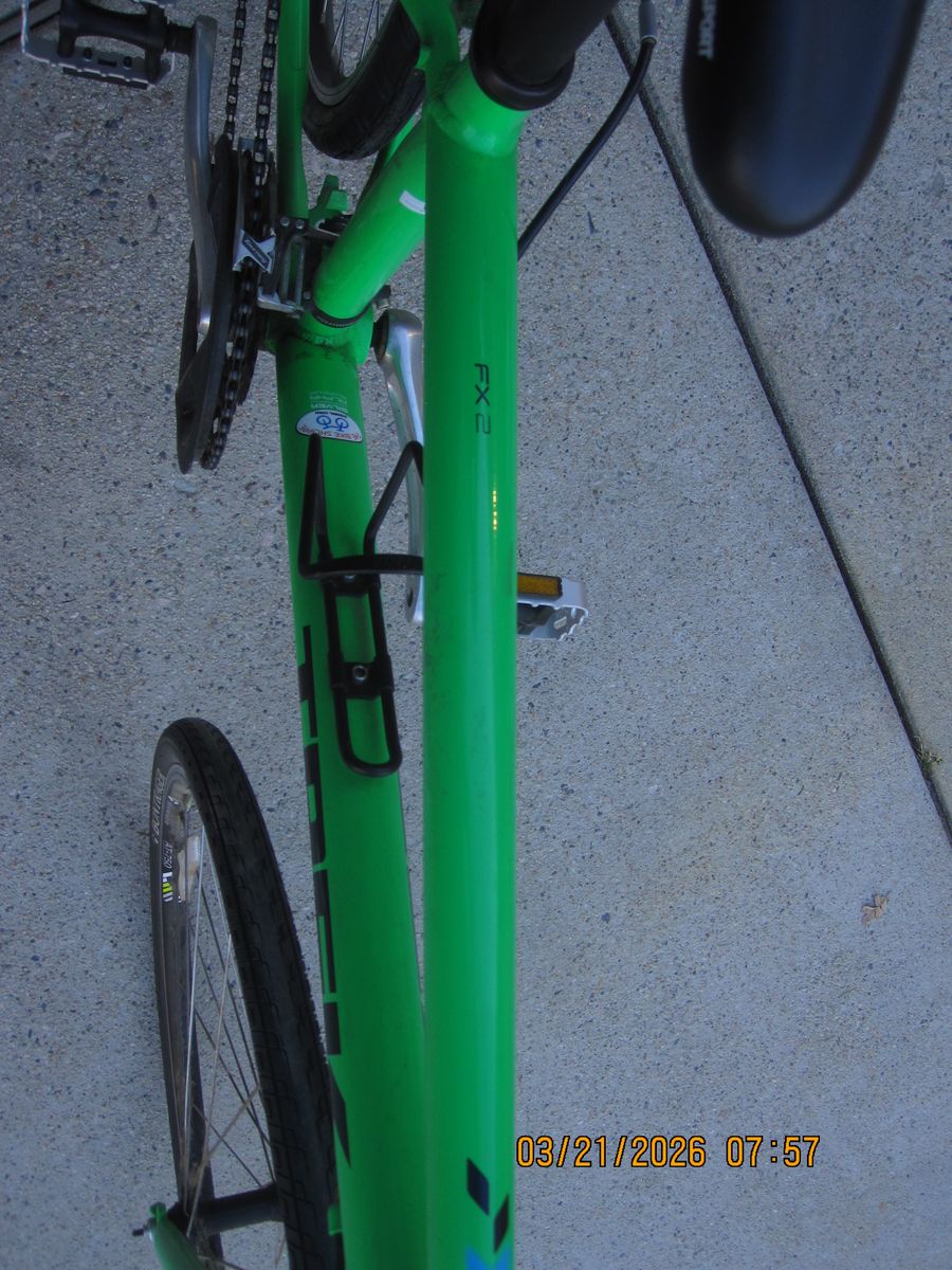 The green bike is an FX2. it is a 15 inch frame. The black one is an FX 7.2. it is a 20 inch frame and has a cat eye for speed and distance. We bought these bikes when we retired thinking we would ride more, well we thought wrong. Very little use on the bikes. $200.00 each or $350.00 for the pair.