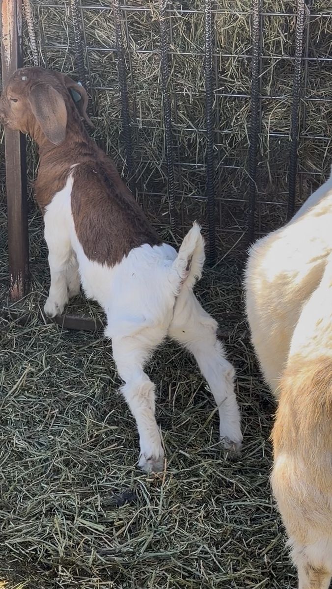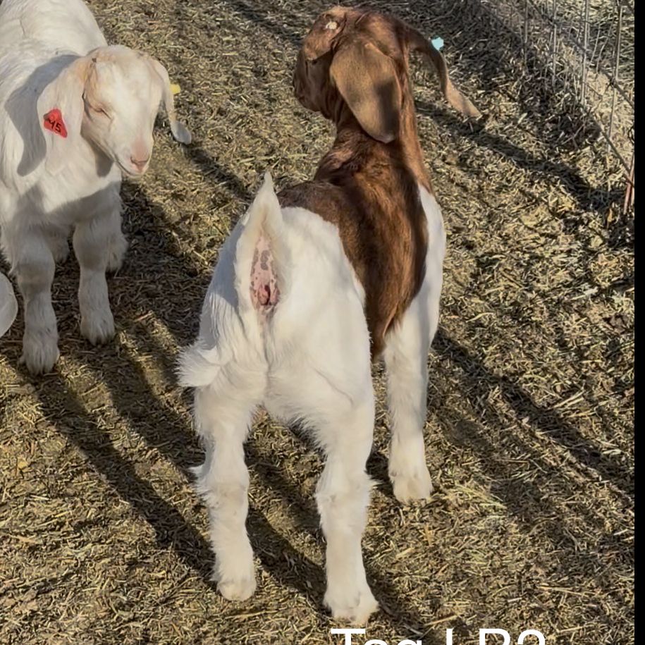 I expect this kid to add bone and a massive back. This whole set of kids have been huge flat backed with lots of bone. He is a triplet and is starting to fill out as well. He is hitting the creep feed. Will be ready for a new home April 18. Here is your chance to get some amazing winning genetics for a good price and local so you don’t have to spend another $500 on transport. We have a few bucks and buck kids for sale. Please call or text or come see them.