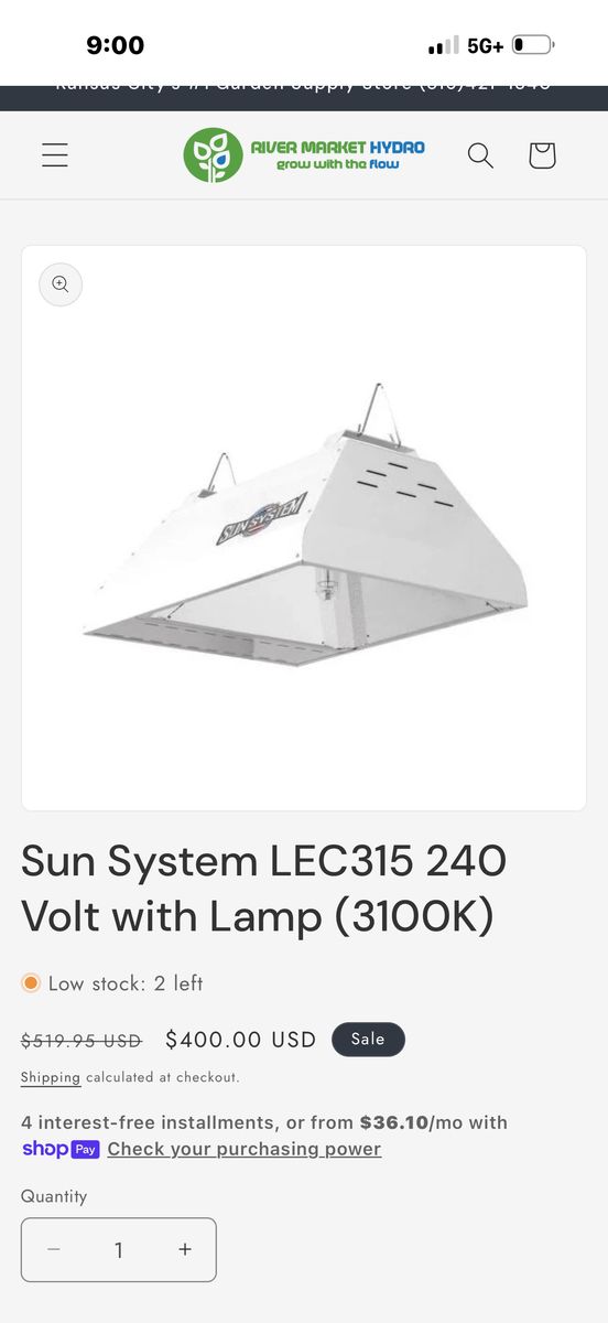 CashAppEfficient Sun System LEC315 grow light. This 240 volt fixture has a 3100K lamp. Good for your indoor garden projects.