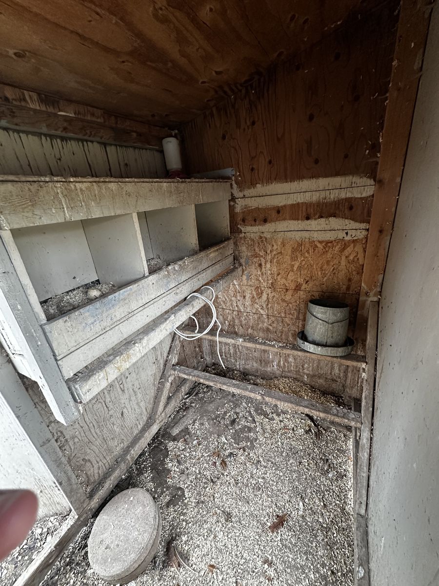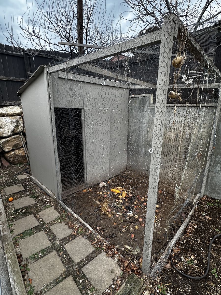 This coop can be yours. 6’ wide x 4’ deep x 6’ tall with three nesting boxes and a run encased with chicken wire - naturally.