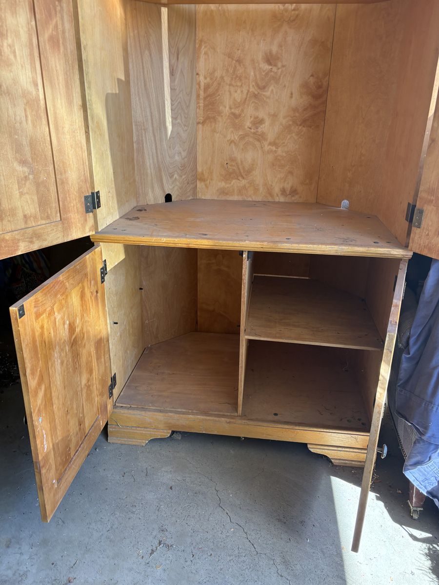 VenmoMade to go in a corner. Solid pine, no particle board. Must go