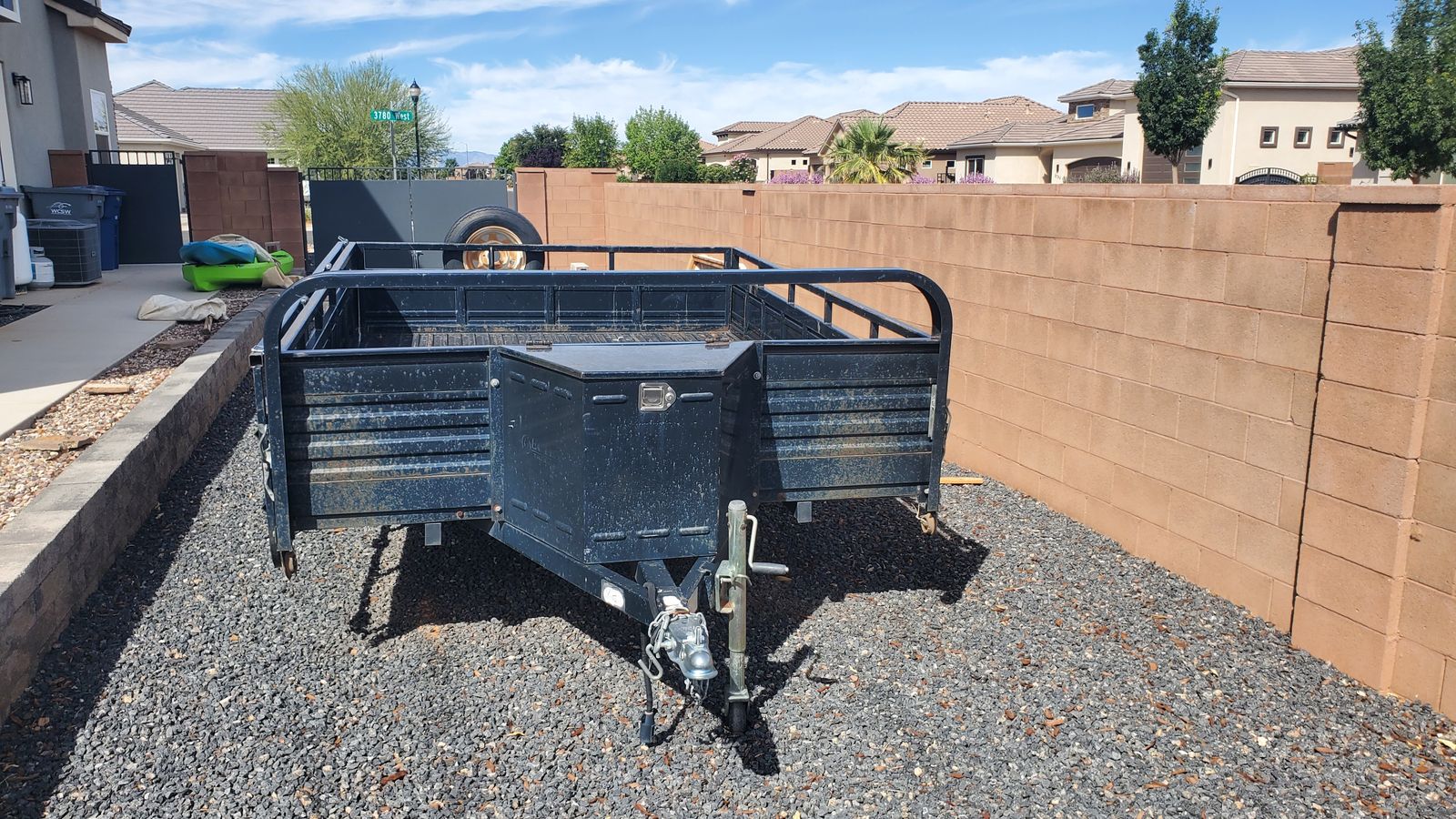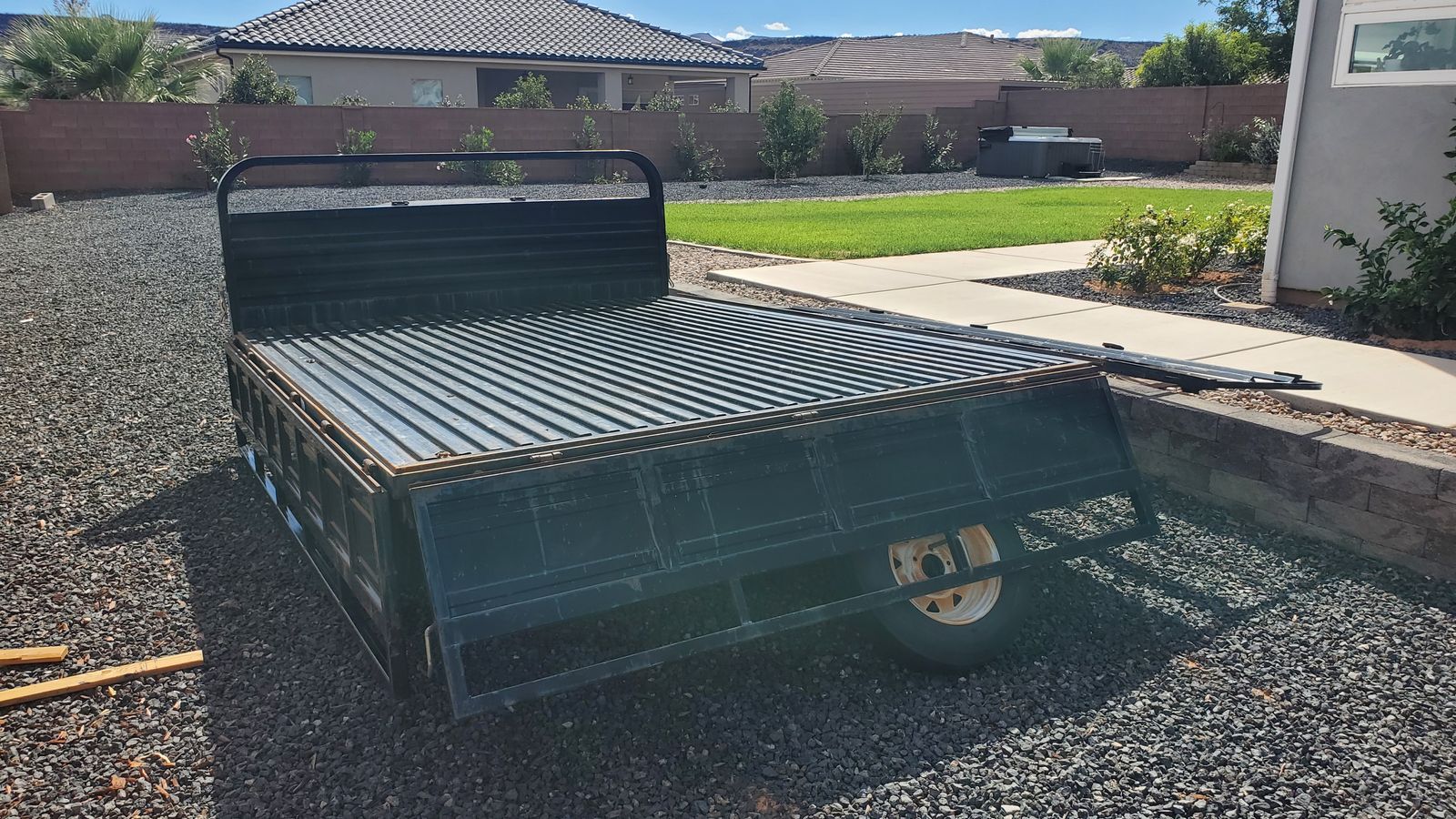 Awesome ATV trailer. 3 sides fold down for easy load/unload. Right side has built in ATV ramp. Also great for hauling almost anything due to the solid sides. Deck is also metal...no wood to worry about or care for.