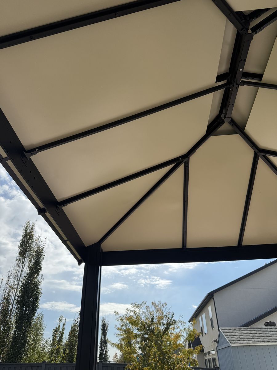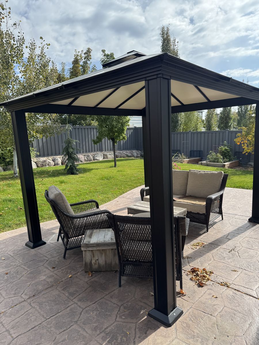 VenmoPergola by Paragon. 10'x12'. Santa Monica. Aluminum with composite panels. Is dissassembled. I can deliver if you are not far. I could possibly help assemble. Manual included. Was not difficult. After a couple weeks I replaced it with a larger one. From Costco.