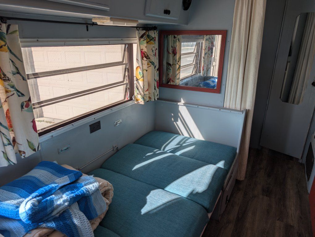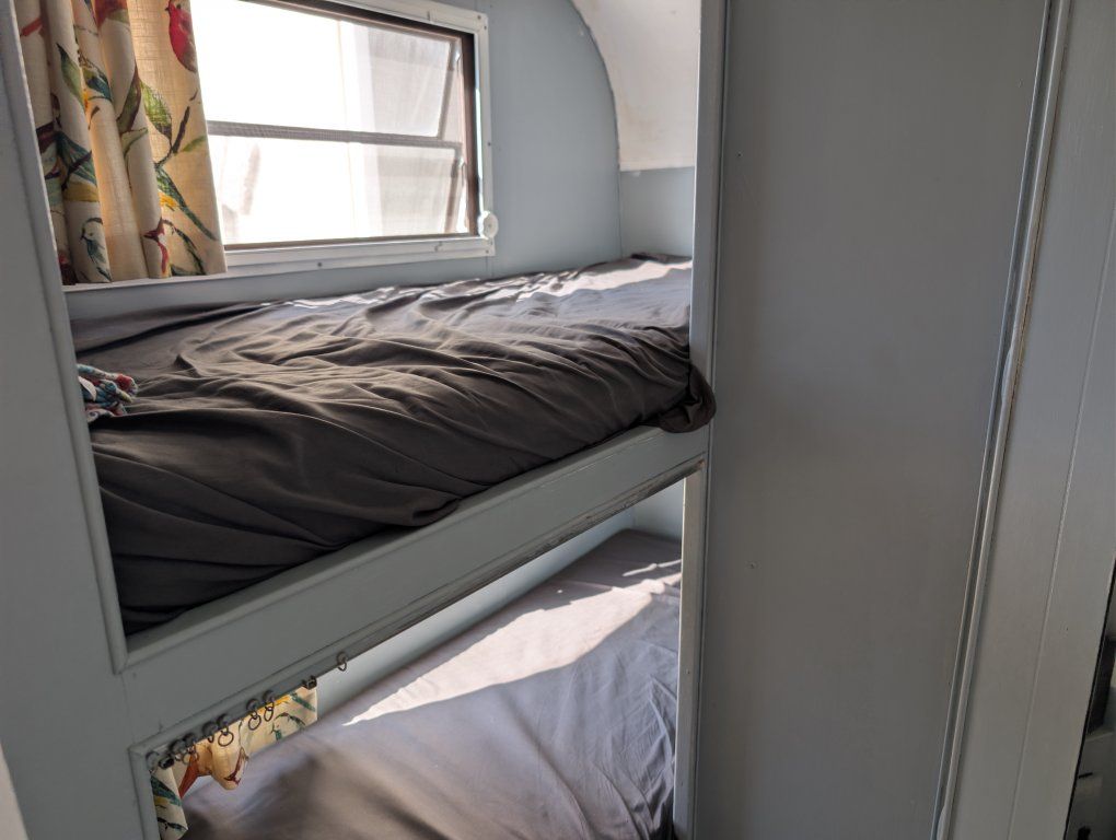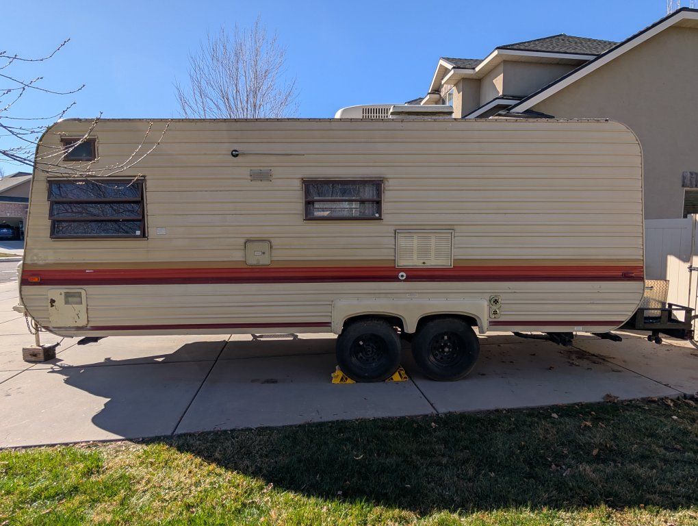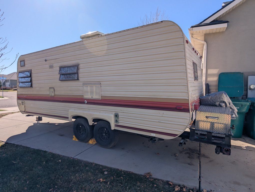 We are sad to let this go. We have made many wonderful family memories in this trailer. This is a 1984 Kit Companion 242. The box is 21 feet long. From the hitch to the back of the trailer is 24 feet. If you include the very sturdy rack in the back, the trailer is a total of 26 feet long. It has a GVWR of 5995 lbs. It can easily be towed with an SUV or ½ ton truck. It is a dual-axel trailer, which means that it tows better than a single and gives you better safety in the event of a blowout. The freshwater tank is 50 gallons. I believe the grey and black are both 40 gallons. The floor plan is ideal for a family. With bunks in the back and a bunk over the main bed, it can easily accommodate at least a family of 5. We took our time doing a total remodel/restoration of this trailer. We first deep-cleaned everything (even though the trailer was quite clean when we got it). Then we started working on all the inner workings of the trailer. We went through all the plumbing and gas lines. We checked the whole trailer for signs of water damage and fixed anything that needed to be fixed (again, this was very minimal). Next, we primed the inside and painted the interior of the trailer. We then recovered all the cushions and painted the cabinets. We put a nice new memory foam mattress where the front bed/couch was. It works extremely well as a couch and bed and is easily converted between the two. We refinished the countertop and installed a backsplash in the kitchen and bathroom. We refinished the tub and put in a new shower curtain. We also put new LED bulbs throughout the inside and outside of the trailer. On the outside of the trailer, the roof was completely and thoroughly resealed. We put 4 new Maxxis tires on it. These are not inexpensive tires. We also put a new identical spare tire on the back. We inspected and repacked the wheel bearings. We inspected the brakes while we were at it. All of that part of the trailer works very well. We put two new large propane tanks and a new valve on (these are currently full). We installed a tongue box for storing all the essentials for getting set up. We resealed all of the windows and the door. Everything works on the trailer except for the refrigerator on propane. I never took the time to repair this, but I do believe it is possible. The fridge does work on shore power (when you’re plugged in). Keep in mind that this is not a new trailer and with all used trailers, there will be small issues. This trailer is no exception. It does also need a new battery as this battery has reached the end of its life span. With that in mind I am open to offers. The equalizer/sway control hitch is included. Title is in hand. Always covered when not in use.