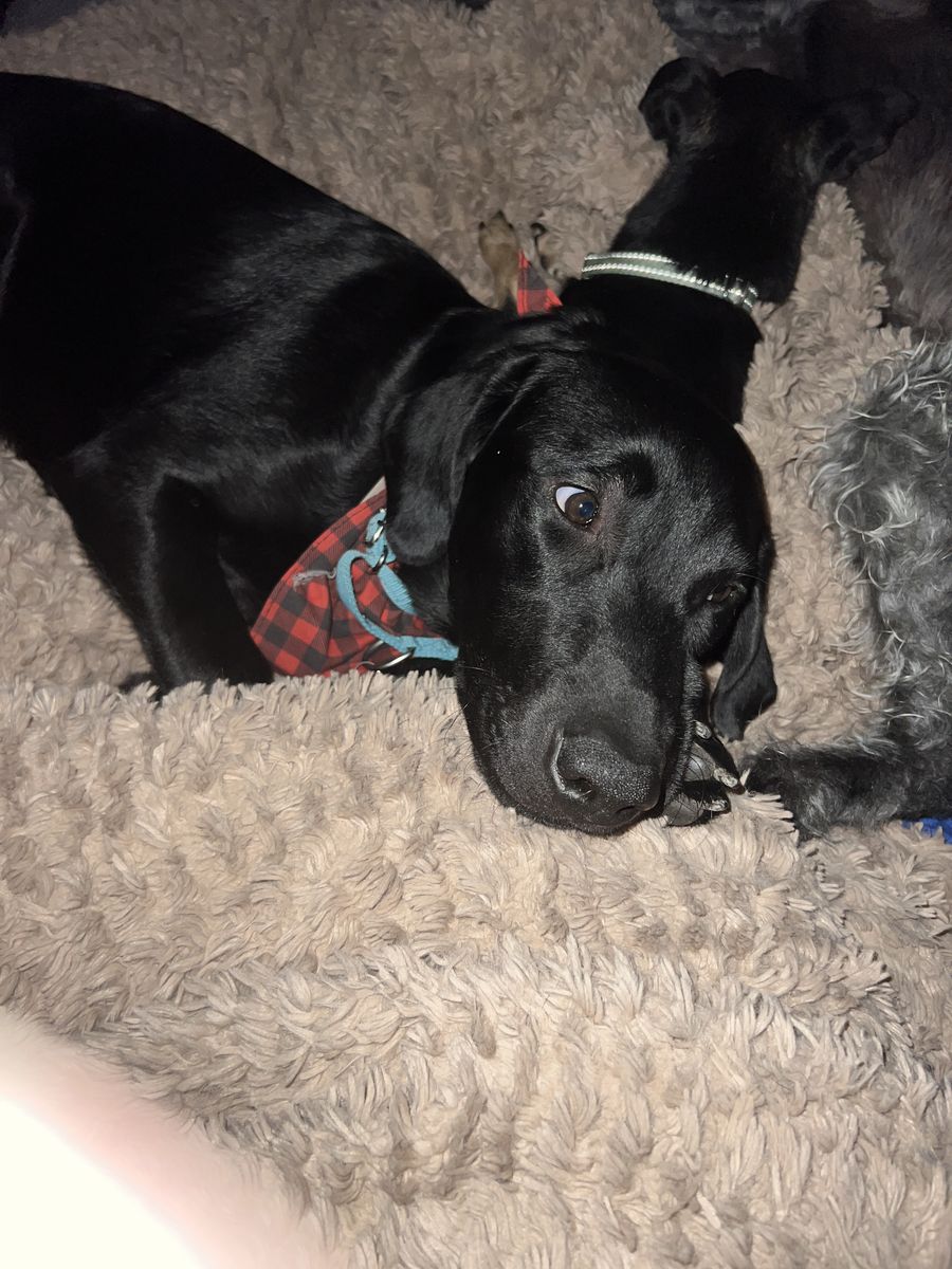 Harry adores children and does best with kids ages 7 and up due to his size and energy. While playful, he’s also a total love bug who enjoys snuggling and being close to his people. He hasn’t been tested with cats but has shown calm curiosity around guinea pigs. Harry is doing well on sensitive stomach food and is ready to bring love, fun, and companionship to the right family.