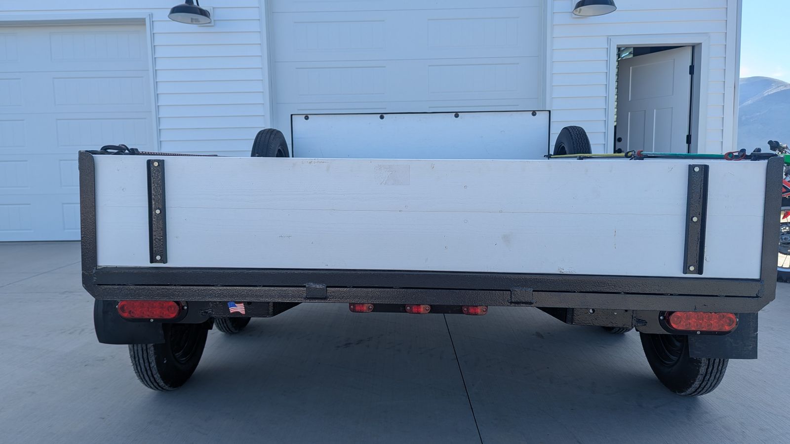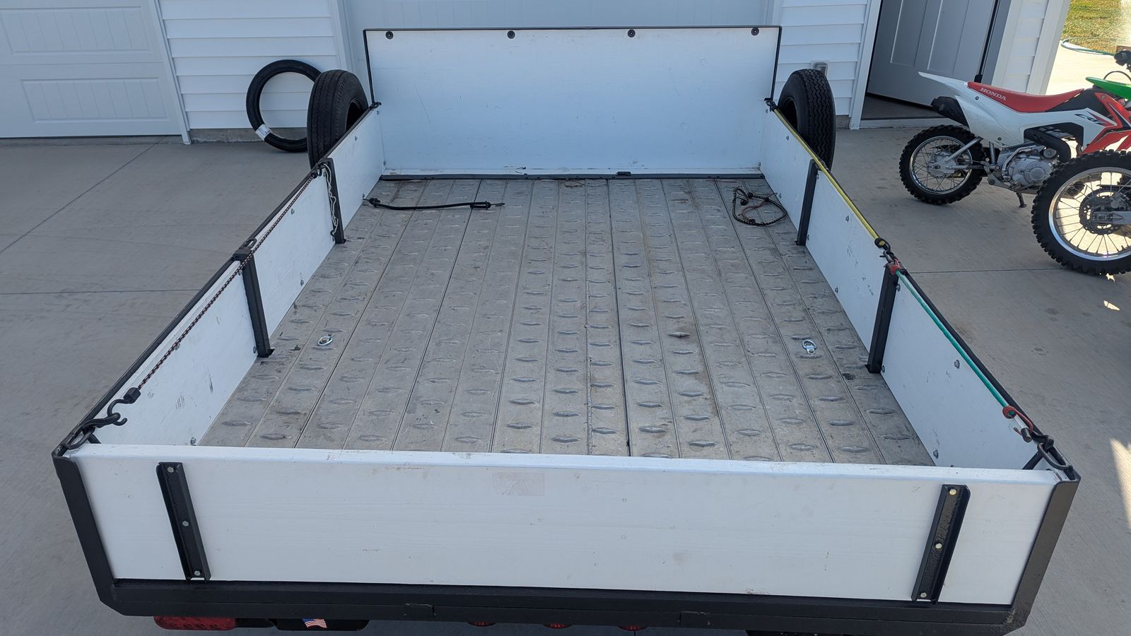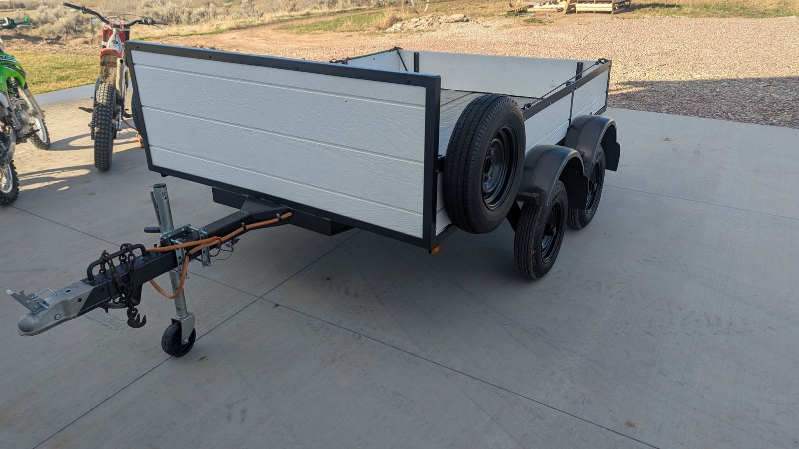 This trailer was built by an experienced welder for someone who wants a small dual axle trailer, as most small trailers are single axle. The cargo box is 5 1/2 ft wide by 8 ft long. Great condition.