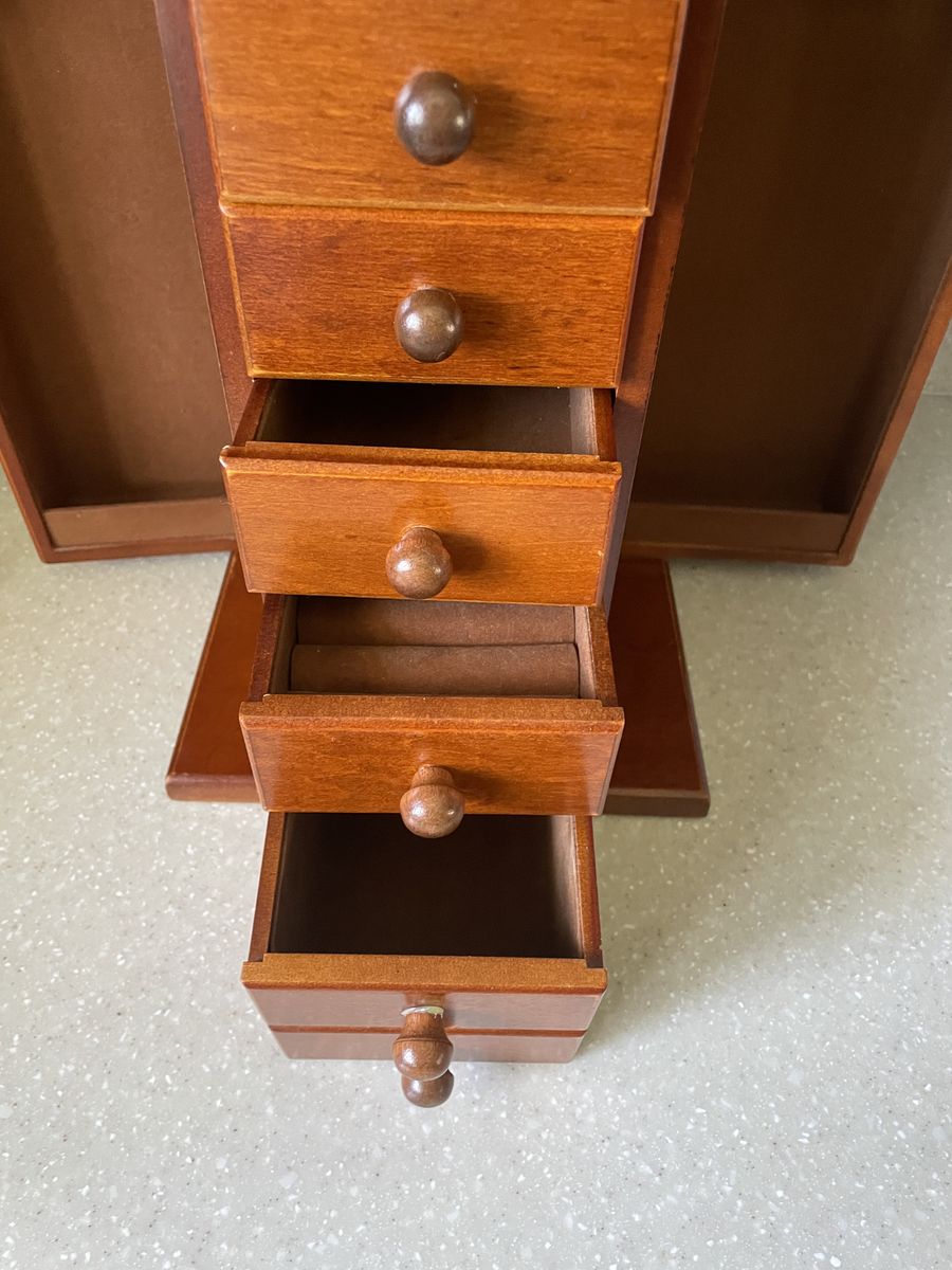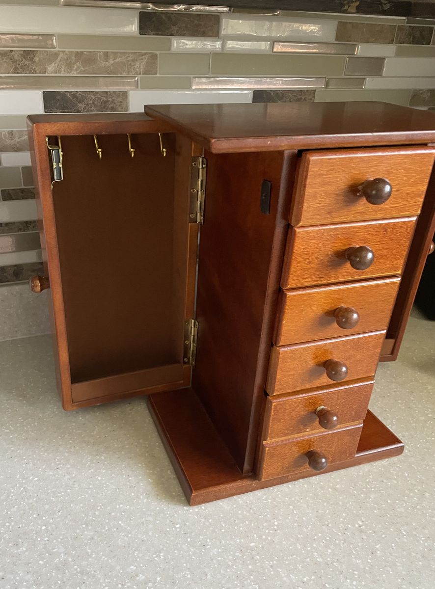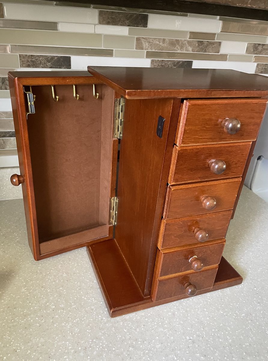 Venmowooden jewelry armoire, commonly handcrafted by Amish craftsmen in various wood finishes.