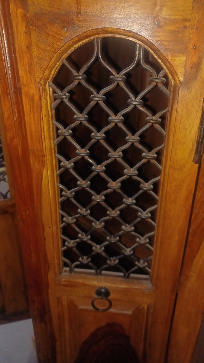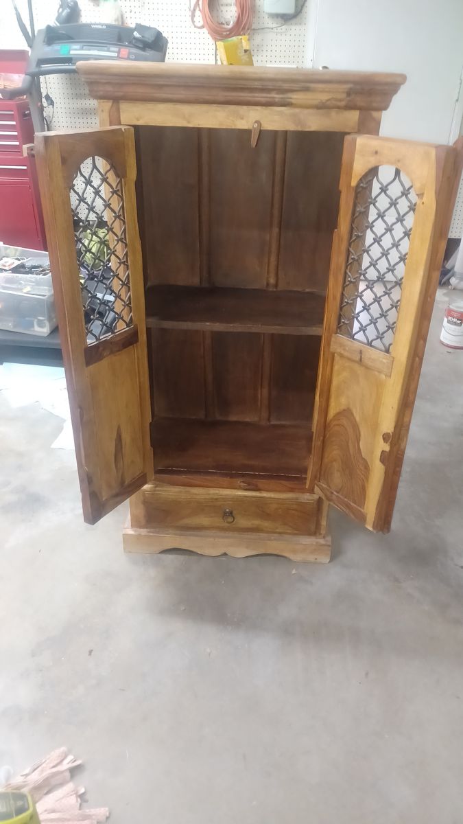VenmoThis cabinet is solid and durable with distinctive grain and natural color variations. Made from Indian Rosewood better known as Sheesham wood. The doors display Wrought Iron windows to add to the beauty and uniqueness of this piece. This cabinet was originally purchased for $1,200. We are asking $300 or best offer.