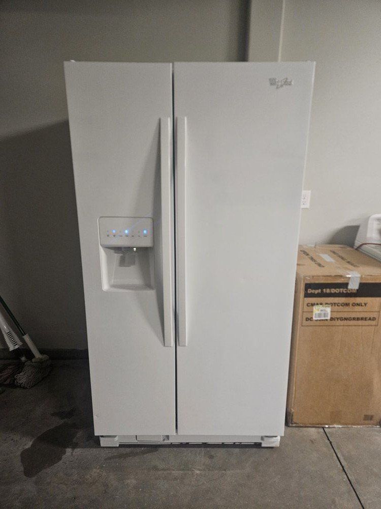 VenmoSAME DAY DELIVERY IMMACULATE WHIRLPOOL SIDE BY SIDE REFRIGERATOR WITH WATER AND ICE DISPENSER EVERYTHING LOOKS AND WORKS AMAZING