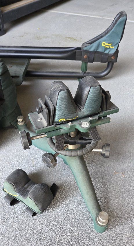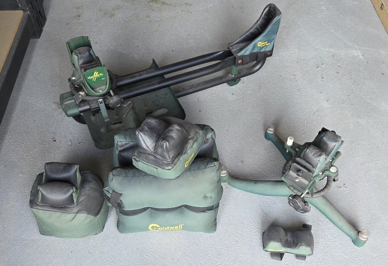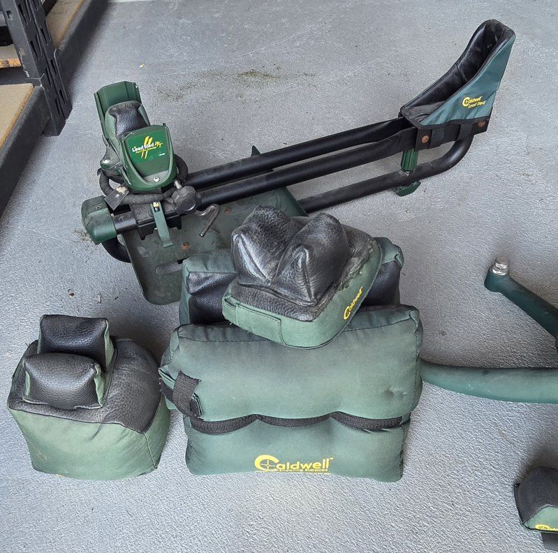 Caldwell lead sled and front shooting rest plus multiple bags.