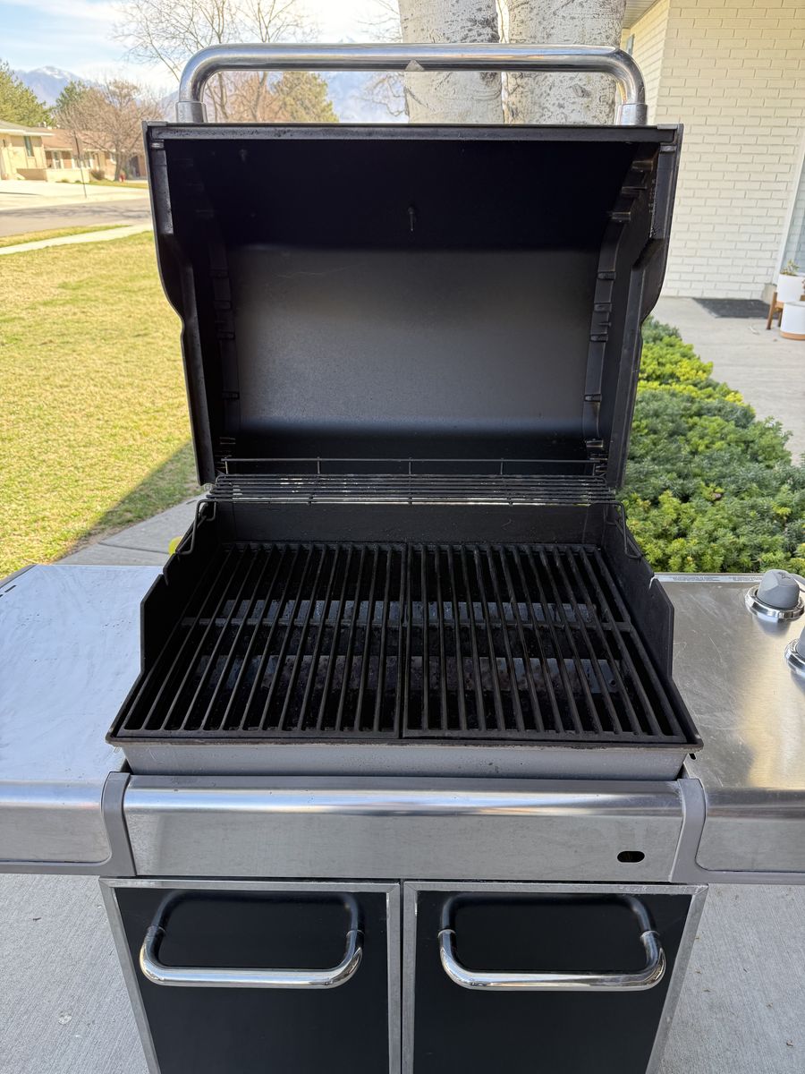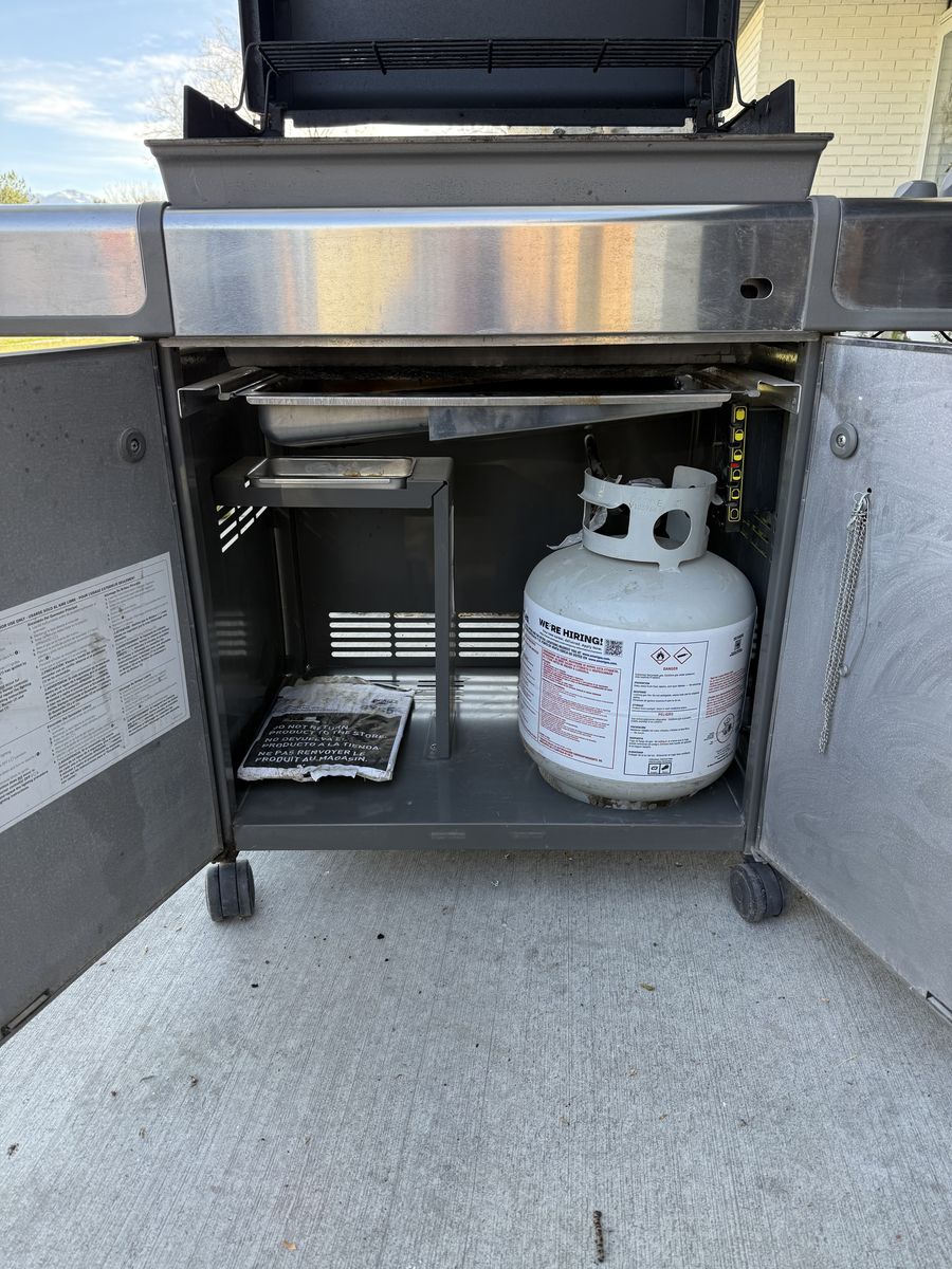 VenmoThis 3 burner grill is is great shape and comes with the propane tank. Everything works and has a weighted fill tank indicator behind the doors. Could use a new cover, it’s seen better days.