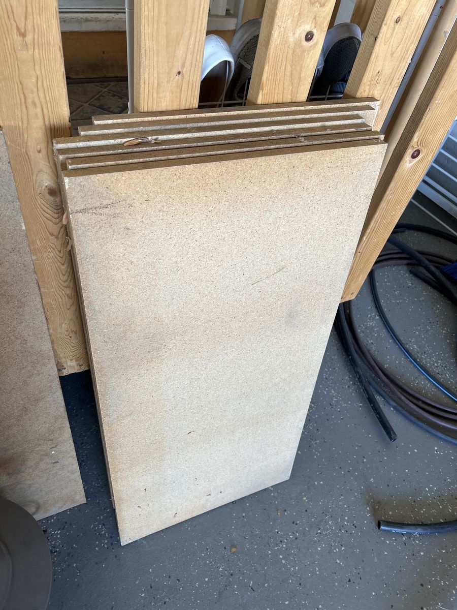 VenmoIndustrial shelves. Missing the 4 legs. All the horizontal pieces and sturdy wood shelves are here. Grab a set of 4 metal legs from Lowe’s for $50 and you are ready to go!